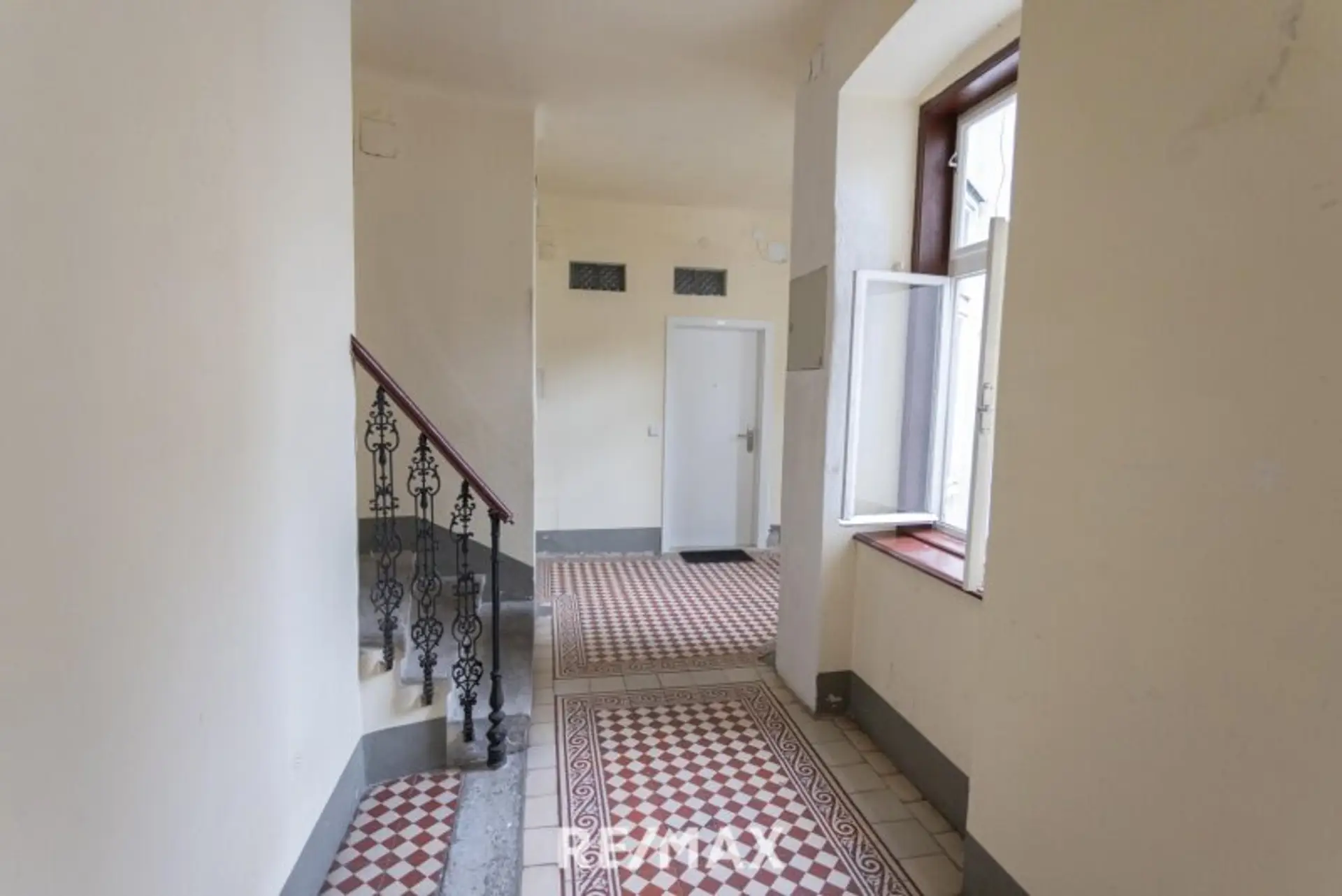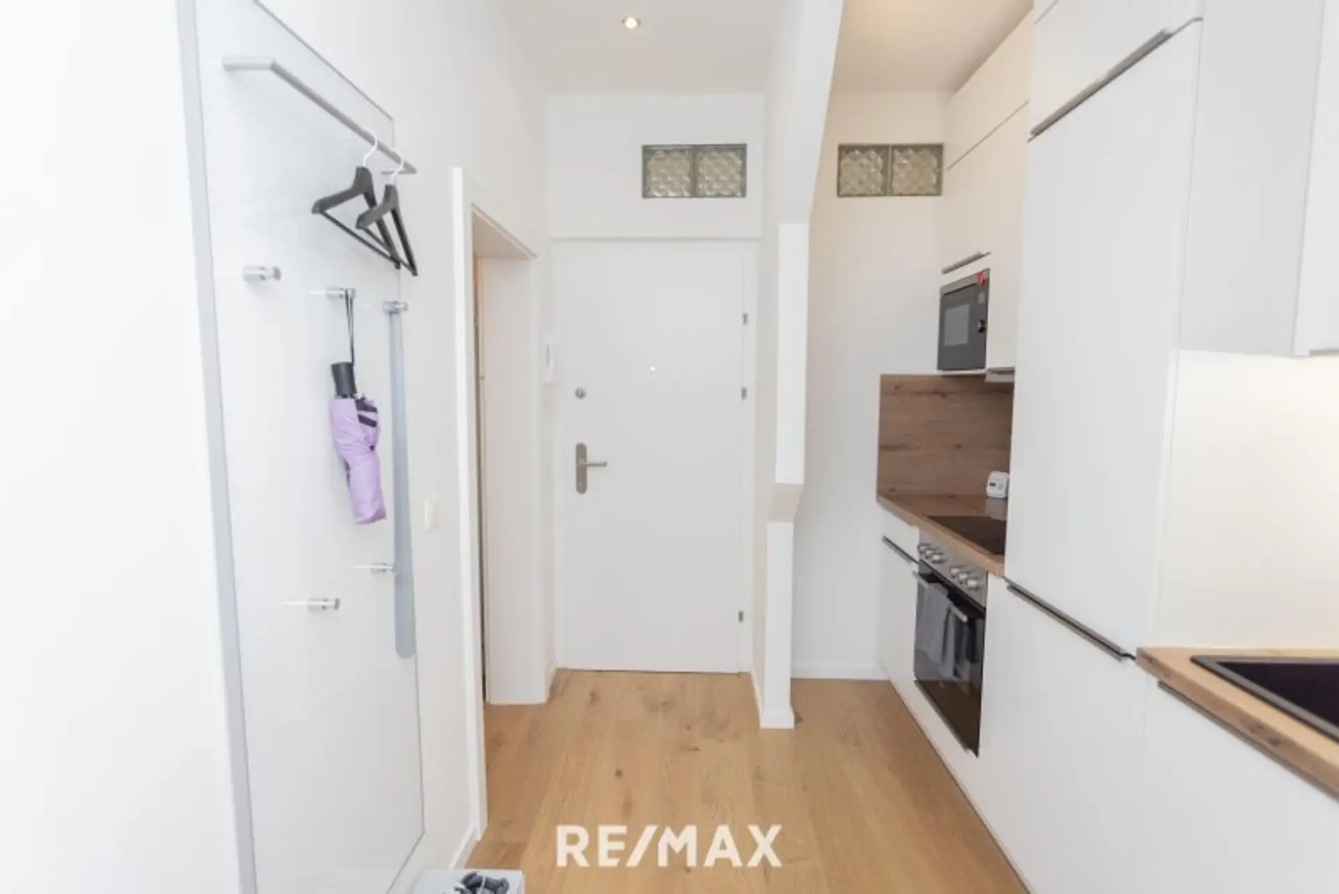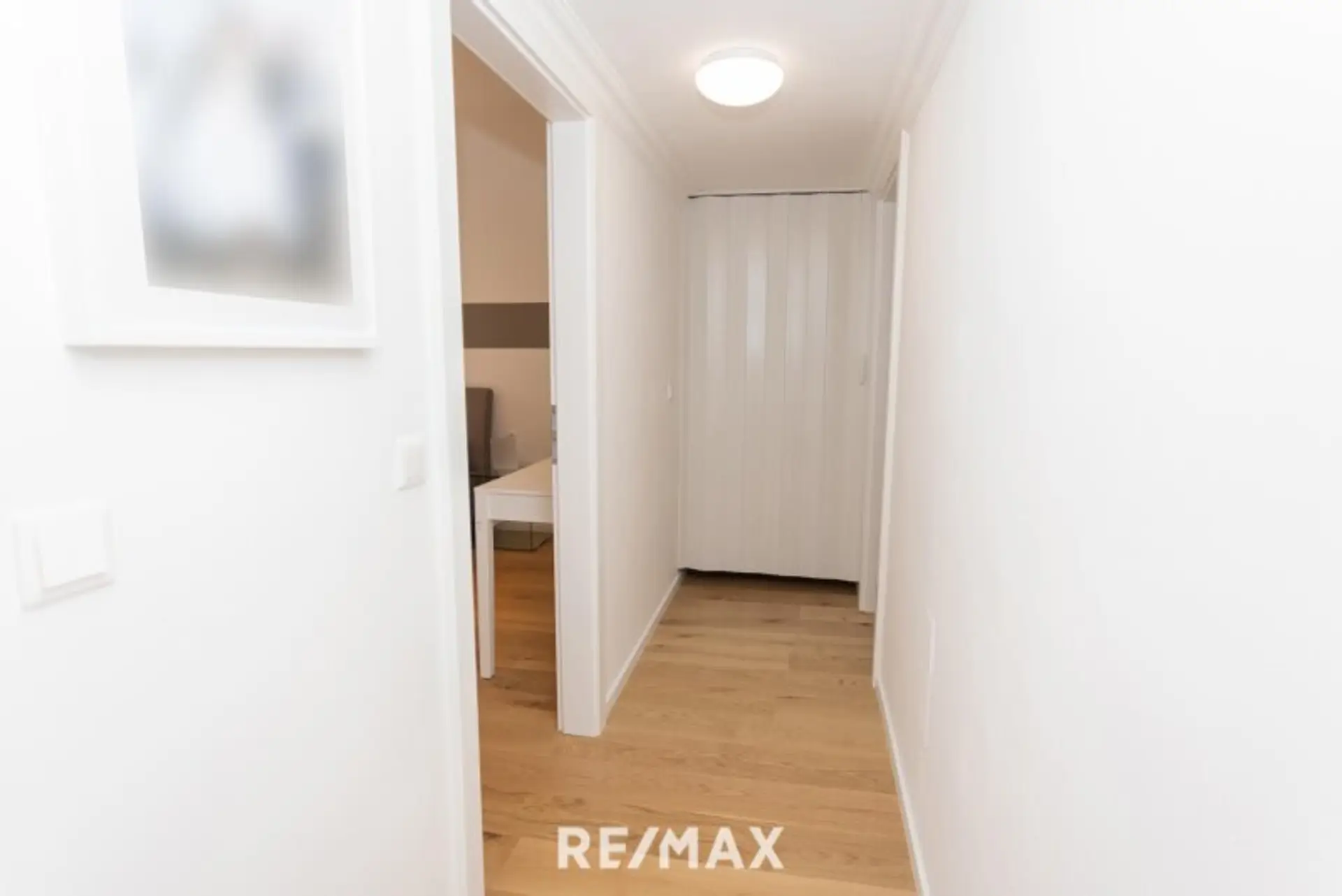 Über den Vorraum gelangen Sie linkerhand in den Küchenbereich, rechterhand in ein Zimmer und geradeaus in das Wohnzimmer.