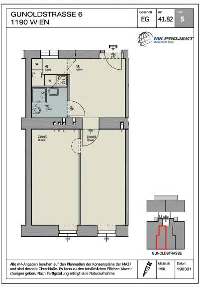 Zum Verkauf gelangen neu sanierte Wohnungen in guter Lage des 19.Bezirk, nur wenige Gehminuten von der U Bahn-Station U4 Heiligenstadt entfernt. Beste Anbindung an diverse Bus und Tram-Verbindungen sowie sehr gute Infrastruktur samt allen Einkaufsmöglichkeiten durch die nahe gelegene Heiligenstädter Straße. Die Straßenbahnlinie D befindet sich ebenfalls in unmittelbarer Nähe und bietet beste Anbindung in die Innenstadt.Ein großer öffentlicher Parkplatz befindet sich unweit des Gebäudes.