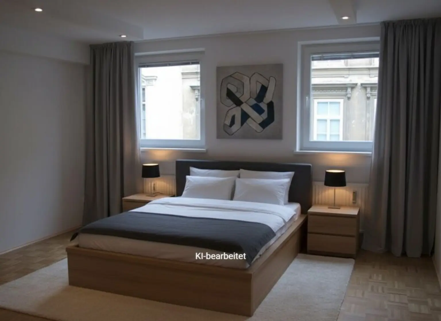 In der ganzen Wohnung wurde der Parkett überarbeitet, Beleuchtungen und neue Fenster mit Jalousien eingebaut.