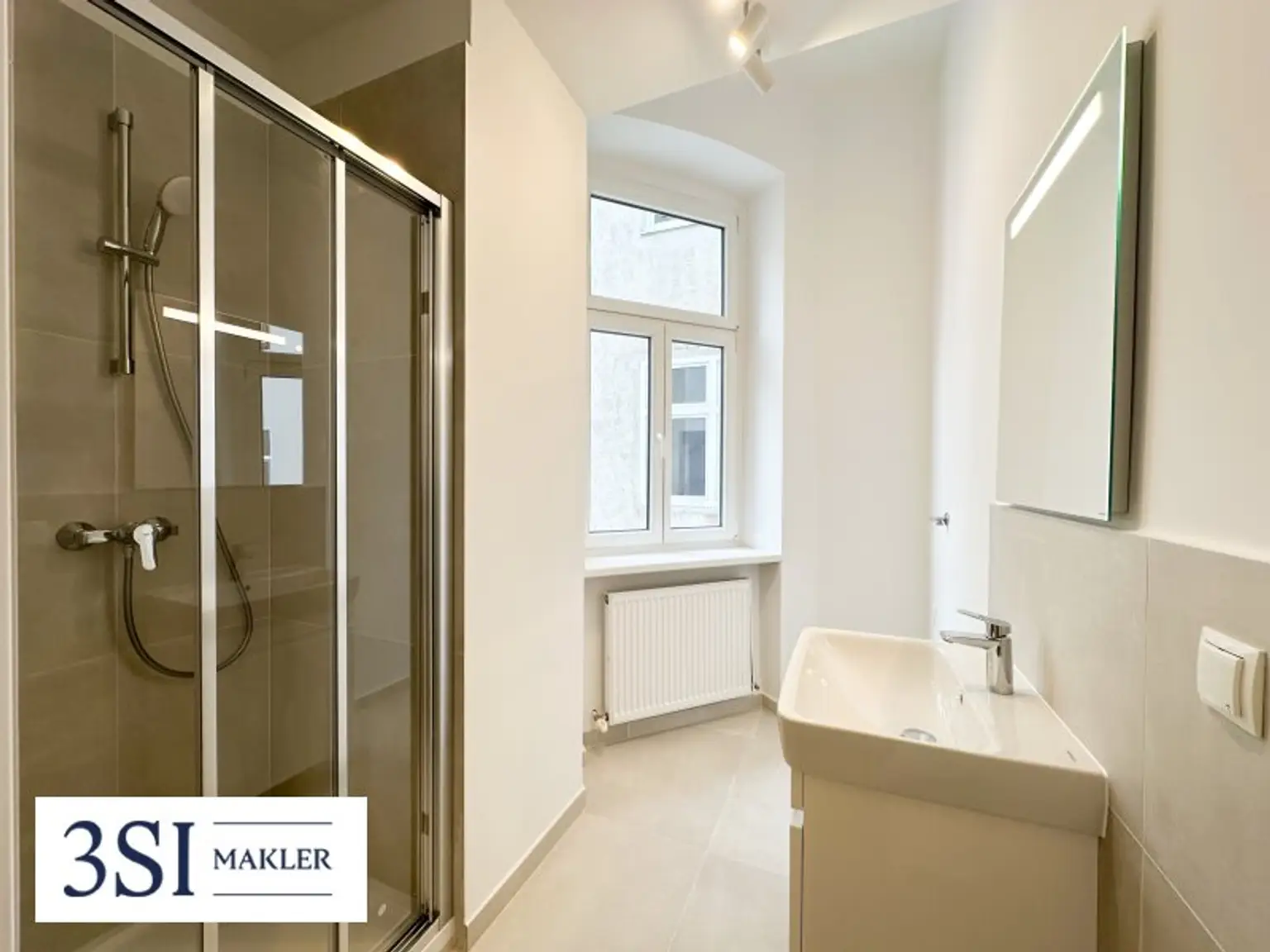 Die Wohnung wurde mit neuen Parkettböden, modernen Fliesen und hochwertigen Sanitärgegenständen frisch ausgestattet.