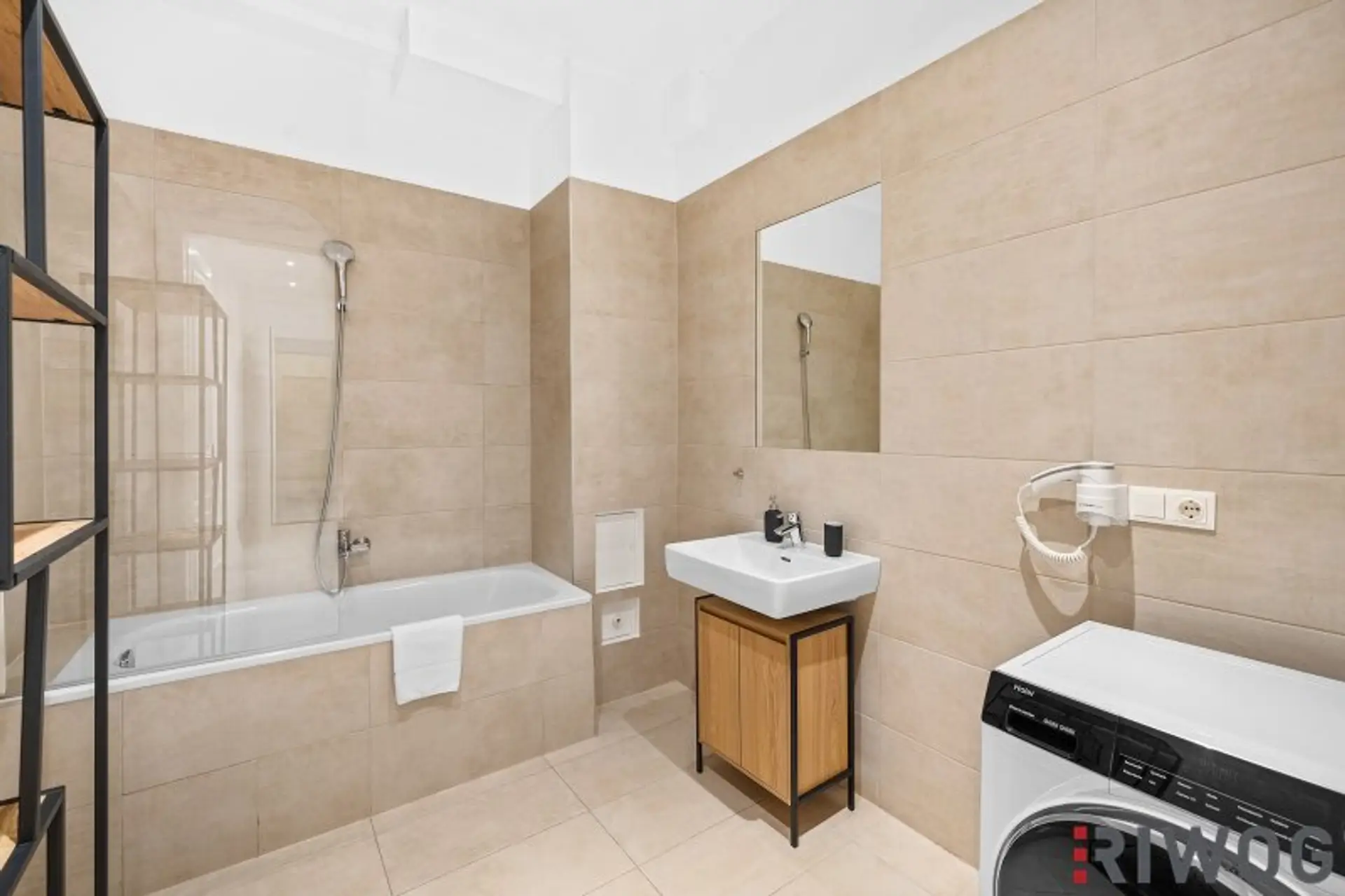 * BADEZIMMER: Badewanne, Handwaschbecken, Waschmaschinenanschluss