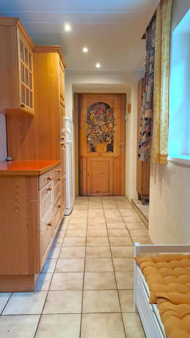 Das 150 Jahre alte Bauernhaus umfasst ein Erd- und Obergeschoss samt ca. 22 m² großen Wintergarten mit herrlichem Blick auf die Wiesenfläche und den angrenzenden Wald. Das Erdgeschoss mit ca. 160 m² gliedert sich in Vorraum, Küche, Wohnzimmer mit Kachelofen, Badezimmer mit Wanne sowie Dusche, WC, Hobbyraum, Heizraum, Speis, Wintergarten und 2 Schlafzimmer. Über eine Treppe mit Sitzlift gelangt man in das ca. 95 m² große und 2004 ausgebaute Obergeschoss mit 3 Schlafzimmer, einem großzügigen Wohnzimmer, WC und Badezimmer. Beide Ebenen wurden so konzipiert, dass sie zwei separate Wohneinheiten bilden können.