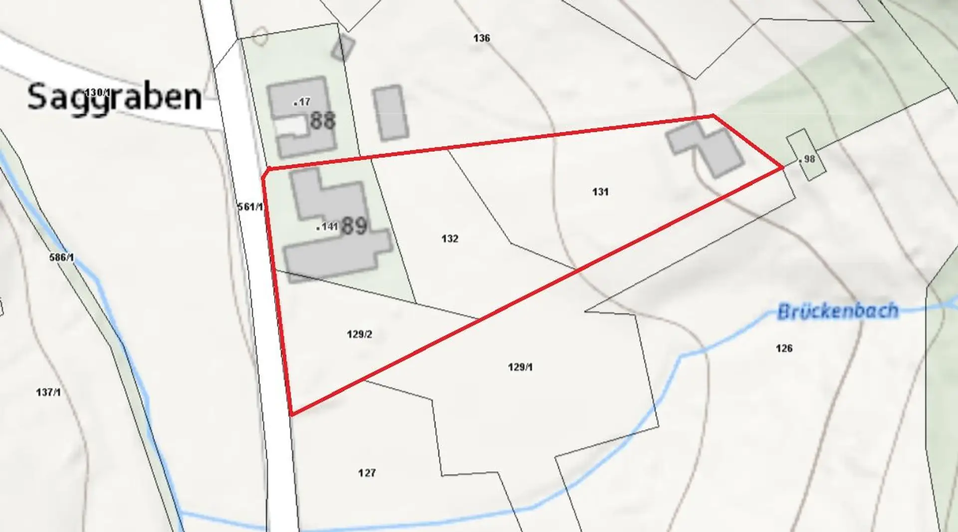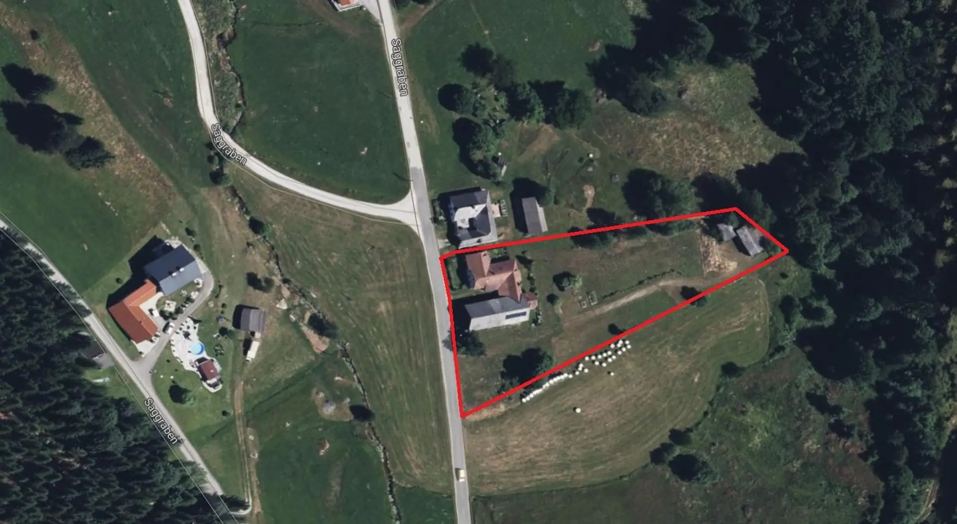 Die Gesamtfläche der Liegenschaft umfasst 4.580 m² mit der Widmung Glf. Das Bauernhaus ist als erhaltenswertes Gebäude ausgewiesen. Die ausgedehnte Wiesenfläche mitsamt des am Waldrand erbauten Stalles mit ca. 70 m² wurde in der Vergangenheit für die Pferdehaltung genutzt.