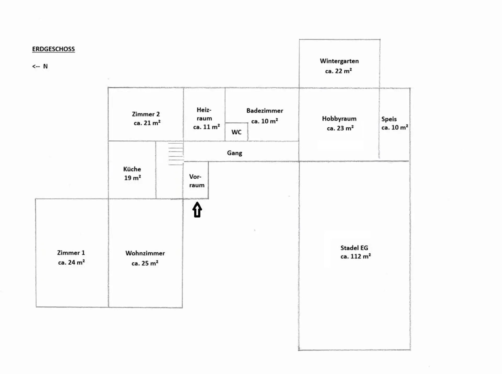 Direkt an das Wohngebäude angebaut, gelangt man über den Hobbyraum in einen ca. 110 m² großer Stadel, der sowohl als Garage wie auch Werkstatt oder Lagerfläche benutzt werden kann. Hier befindet sich ebenso der 2025 neu errichtete 8 to Pelletsspeicher. Der große Stadel verfügt über ein Obergeschoss, welches ebenso vielfältig verwendet werden kann. Straßenseitig am Grundstück gelegen, dient ein kleinerer Stadel mit ca. 20 m² als zusätzliche Abstellfläche.