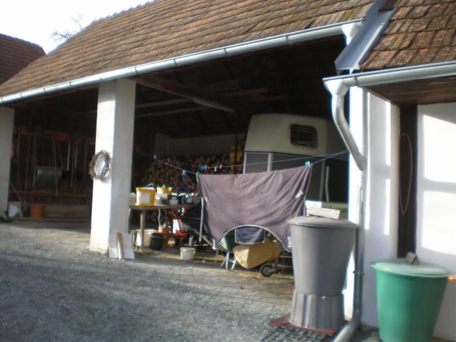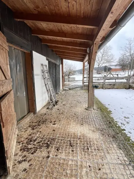 Die Liegenschaft ähnelt einem Streckhof, hat ein großes Einfahrtstor zum Innenhof, einen offenen großen Schuppen, Nebengebäude, eine Pferdekoppel und zwei liebevoll angelegte kleine Erdkeller!