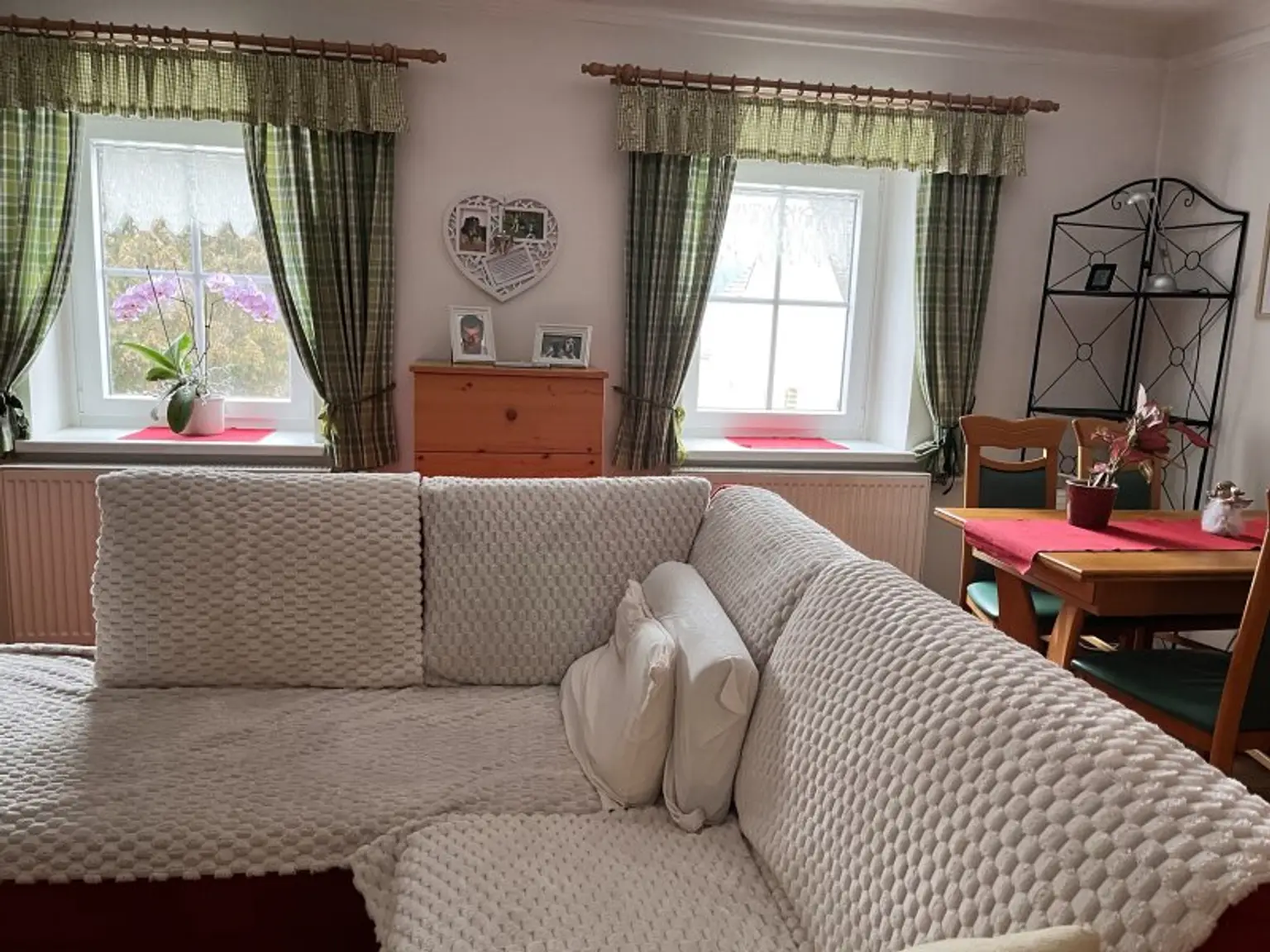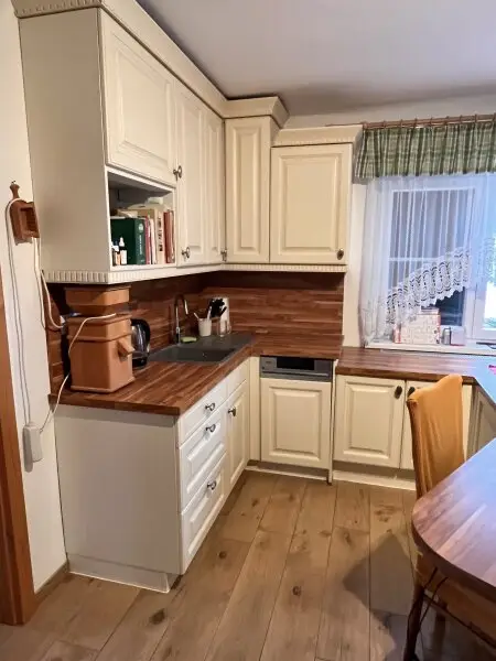 Derzeit stehen zwei Zimmer im Haus und eine weitere Räumlichkeit im gegüberliegenden Nebenhaus zur Verfügung! Im Wohnhaus erwartet Sie eine stylische moderne Einbauküche mit sämtlichen Elektrogeräten, ein nostalgischer Küchenherd zum kochen und befeuern, ein geräumiges, lichtdurchflutetes Wohnzimmer, ein Schlafzimmer, ein Bad mit moderner Dusche und ein WC.