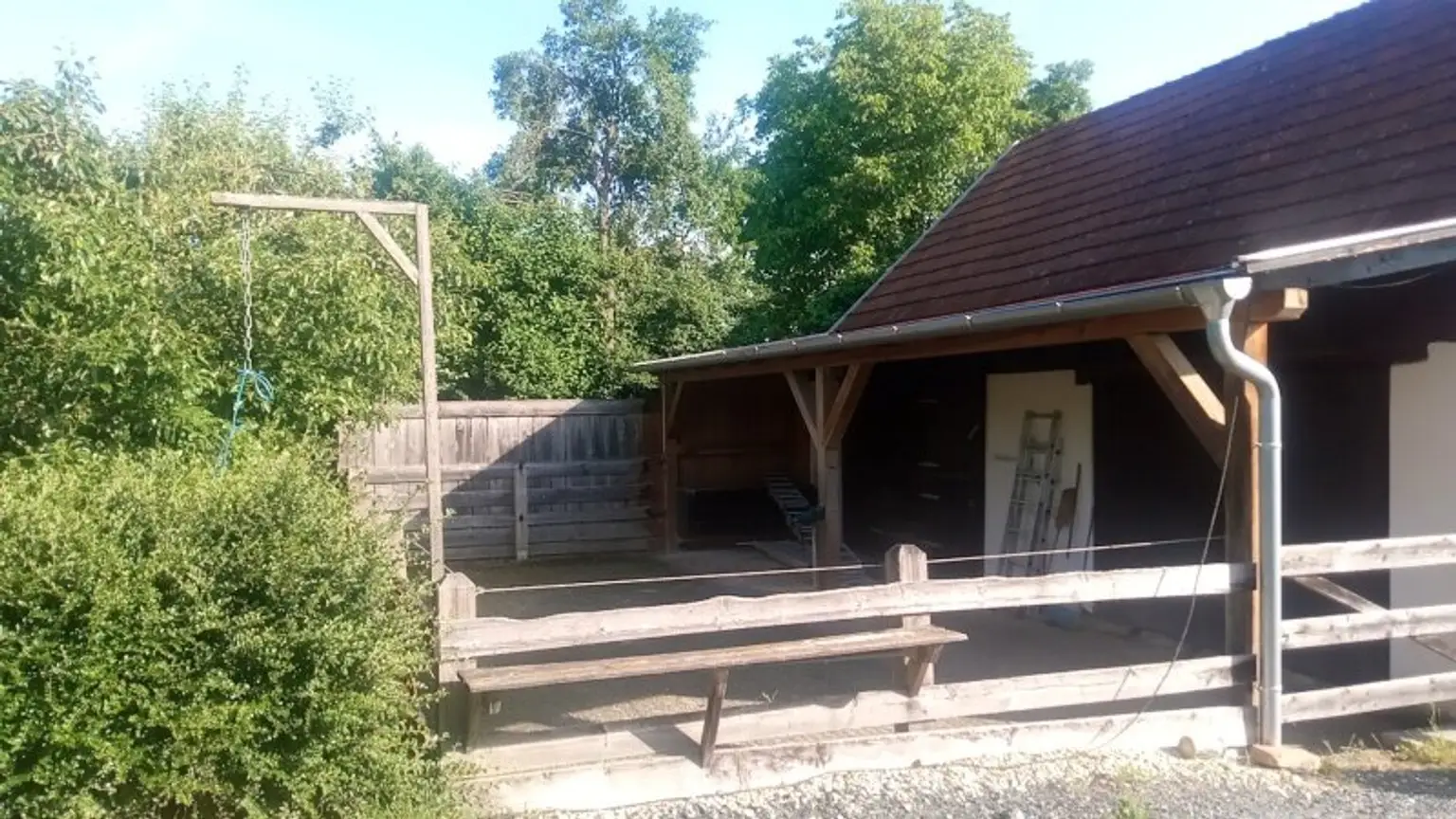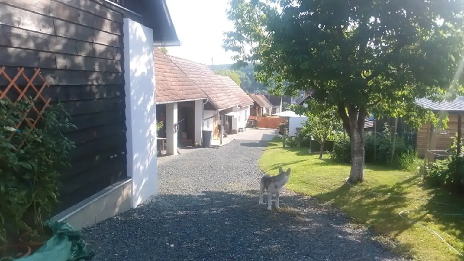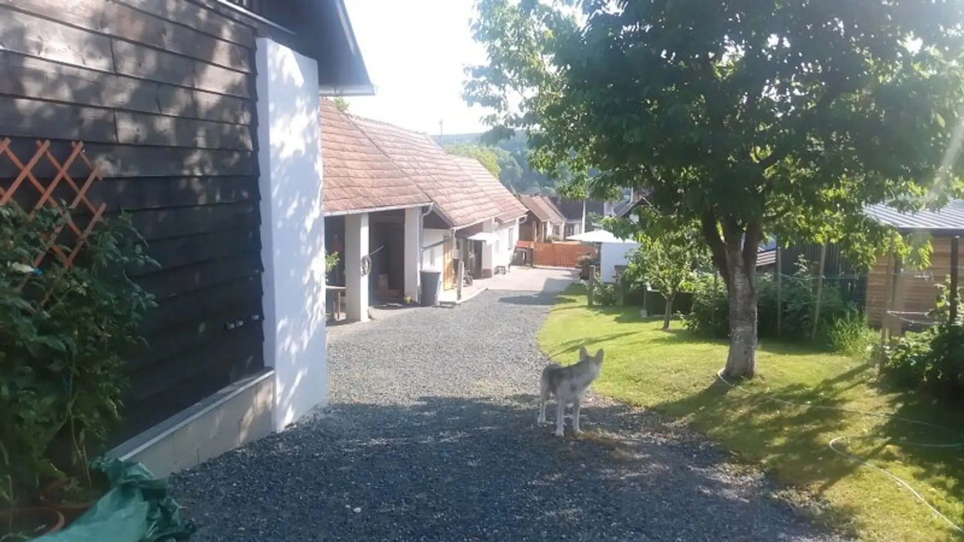 Die Liegenschaft ähnelt einem Streckhof, hat ein großes Einfahrtstor zum Innenhof, einen offenen großen Schuppen, Nebengebäude, eine Pferdekoppel und zwei liebevoll angelegte kleine Erdkeller!