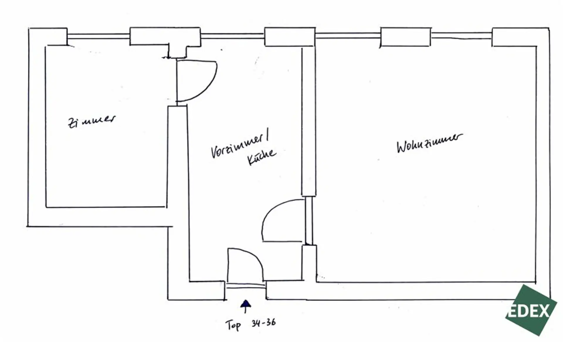 TOP 34+35+36: ca. 39,61 m² 2-Zimmer-Wohnung, Preis : EUR 119.000,- (sanierungsbedürftig)