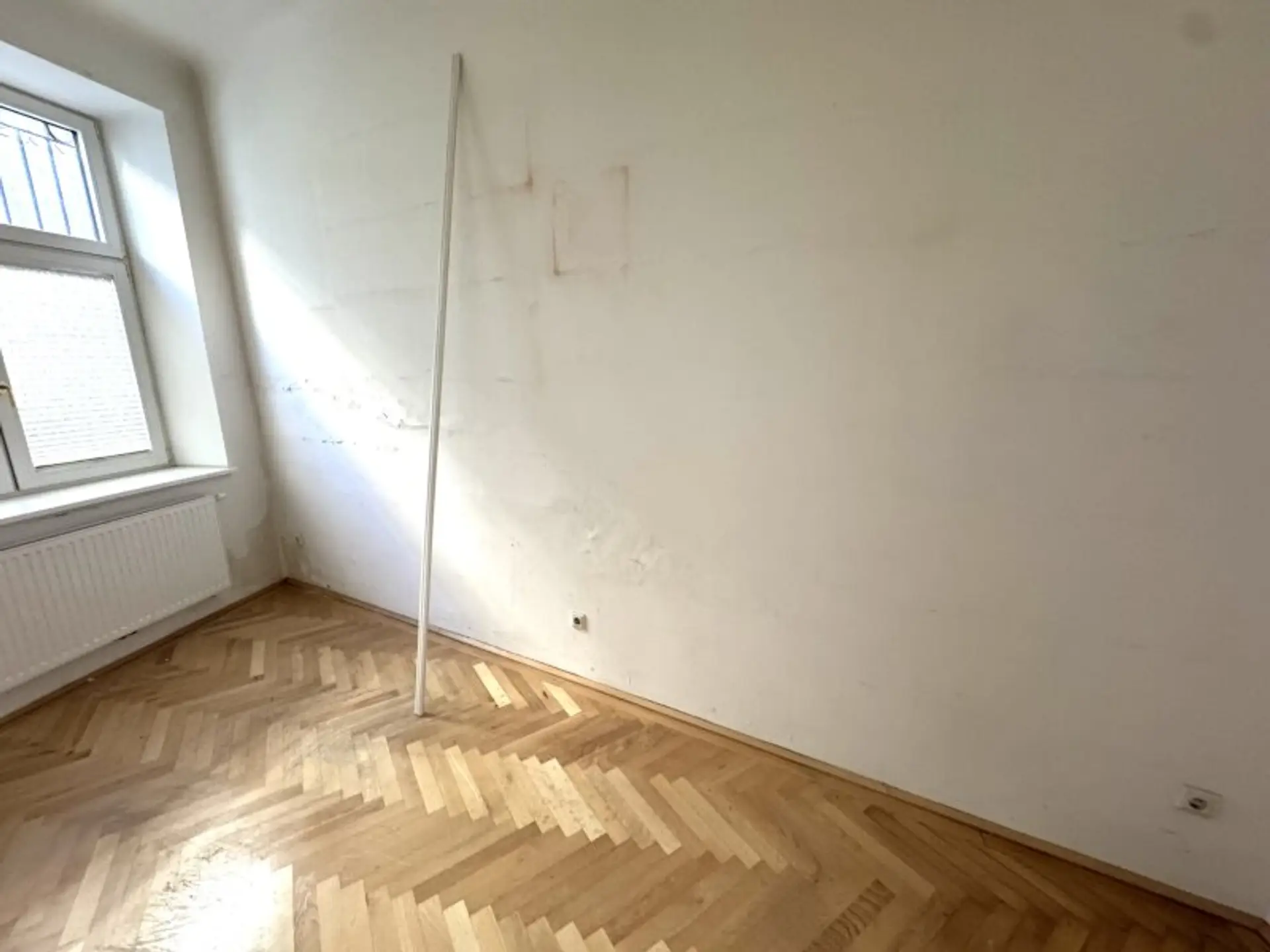 Über den Vorraum sind sämtliche Räume zentral begehbar. Rechts vom Eingangsbereich befindet sich die separate Toilette. Links gelangt man in das Schlafzimmer. Geradeaus vom Vorraum ist das Badezimmer erreichbar. Ebenfalls vom Vorraum aus betritt man das Wohnzimmer, von dem aus ein weiteres Kabinett zugänglich ist. Die Küchenanschlüsse befinden sich derzeit im Vorraum, was im Zuge einer Sanierung flexible Gestaltungsmöglichkeiten eröffnet.