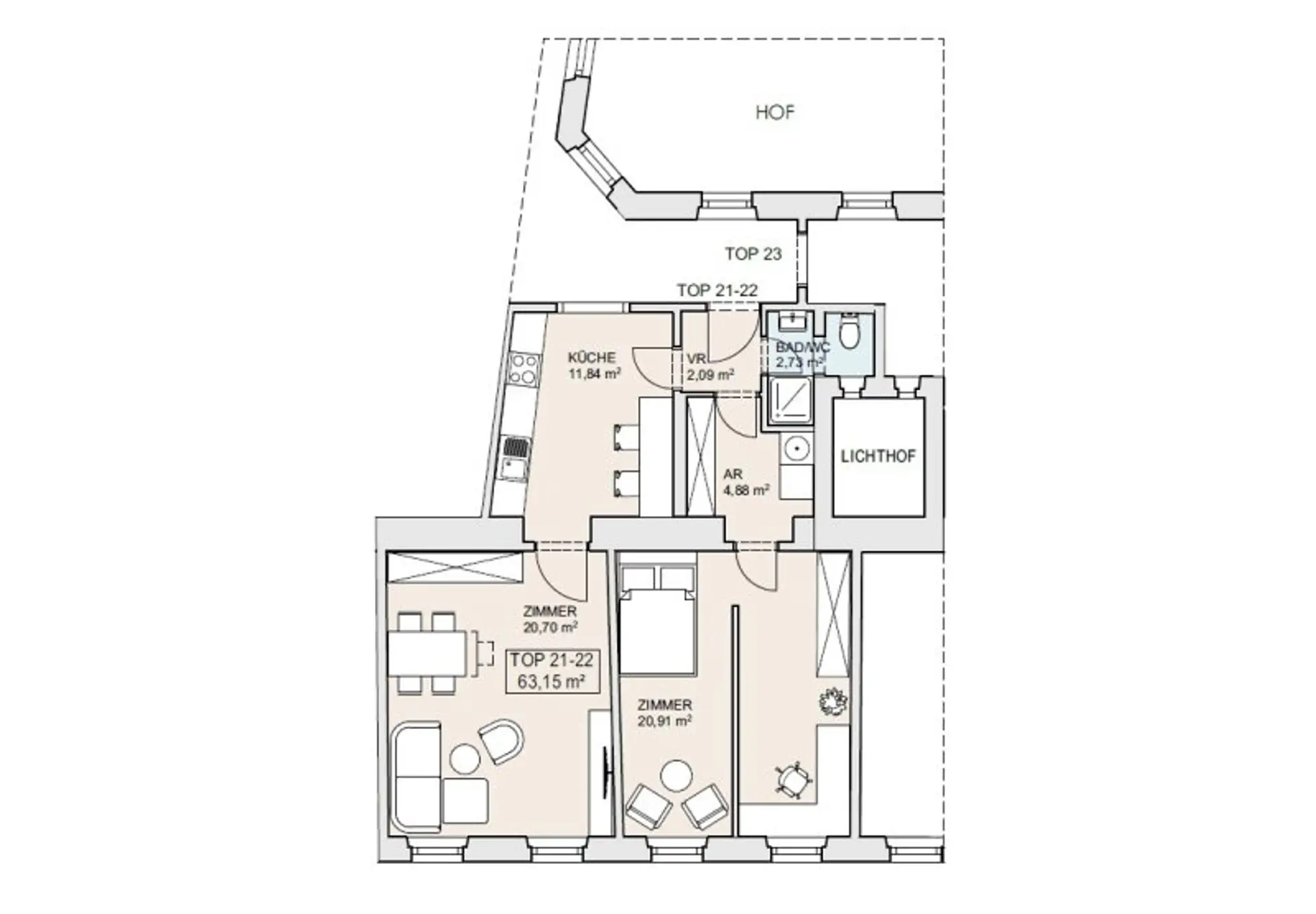 In Kürze erreichen Sie die U4-Station Friedensbrücke sowie andere öffentliche Verkehrsanbindungen.