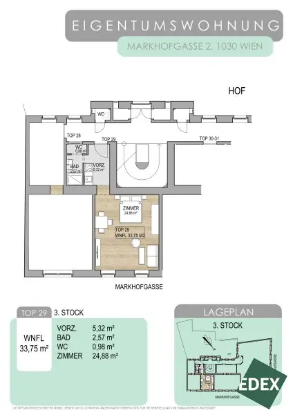 Die ca. 34 m² große 1-Zimmer-Wohnung liegt im 3.Stock eines gepflegten Altbaus, der sich im 3. Wiener Gemeindebezirk befindet. Aufgrund ihrer kompakten Größe und der ausgezeichneten Lage, bietet sich diese Wohnung perfekt als Stadtwohnung an. Die Wohnung verfügt über einen Vorraum mit Küche und Dusche, sowie ein geräumiges Zimmer, das sich wunderbar als Wohn- und Schlafbereich eignet. Das WC befindet sich am Gang. Die Wohnung wird mittels Gas-Etagenheizung beheizt.