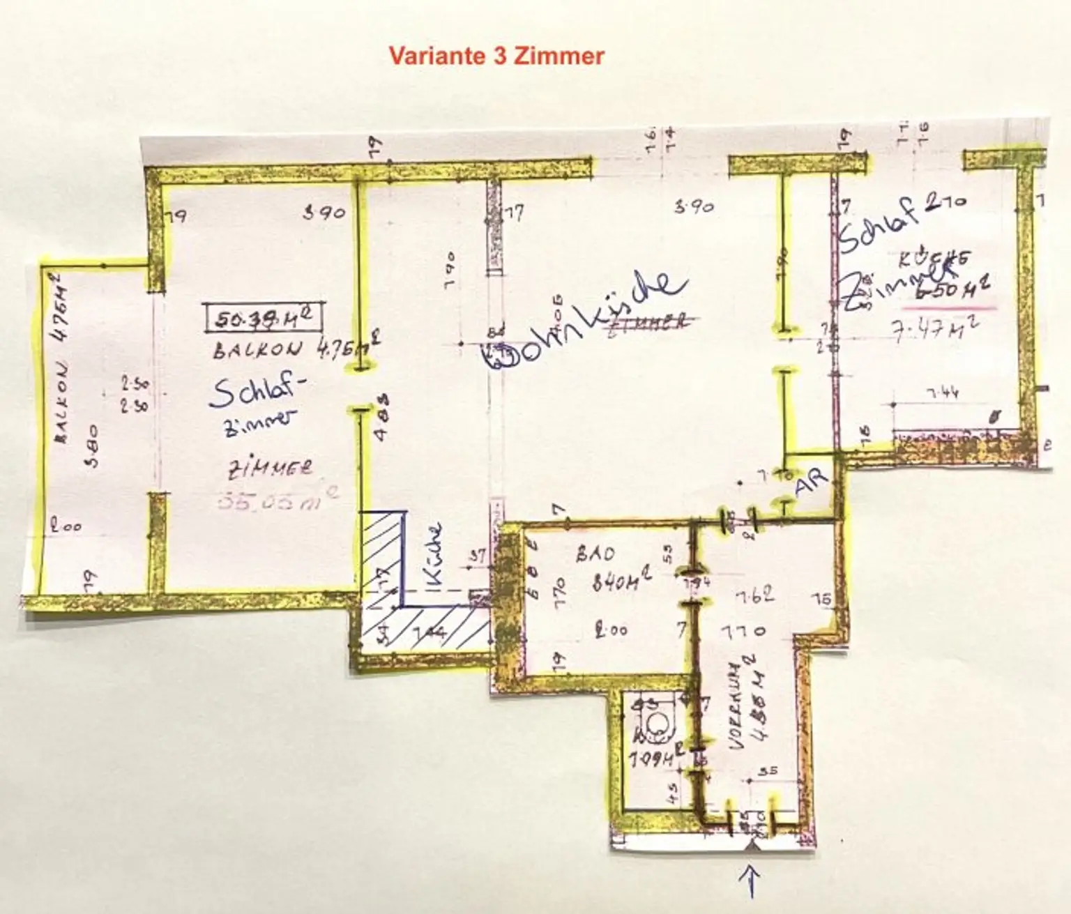 Die bestehende Raumaufteilung bietet hervorragende Möglichkeiten für eine Neuorganisation der Grundrisse, um zusätzlichen Wohnraum zu schaffen. Durch die Sanierung kann die Wohnung effizienter strukturiert werden. (siehe Grundrissplan *Variante 3 Zimmer*) - Hierbei handelt es sich um eine Empfehlung, für die Richtigkeit oder die bautechnische Umsetzbarkeit des vorgeschlagenen Grundrisses wird keine Haftung übernommen! Den Bestandsplan finden Sie ebenfalls im Exposé.