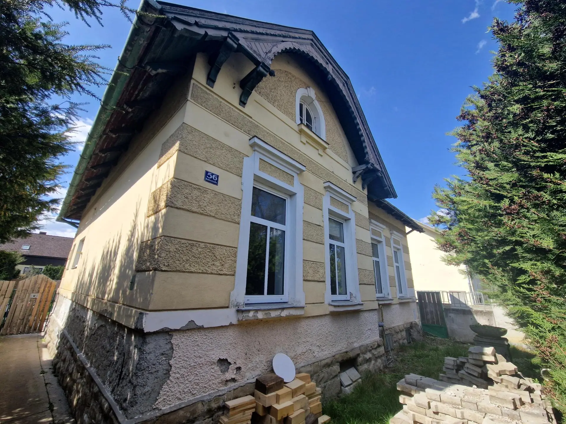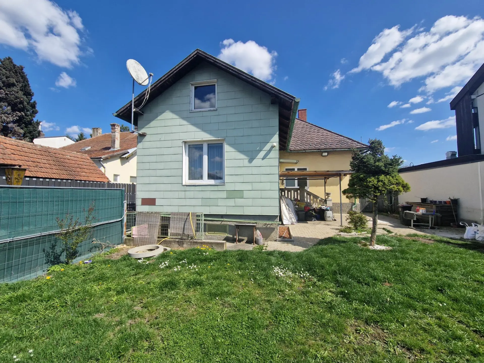 Das Einfamilienhaus in Massivbauweise ist sofort verfügbar und wartet bereits auf neue, nette Eigentümer. Vom geschlossenen Vorgartenbereich aus gelangt man in den Windfang, von dort in einen großzügigen Vorraum, von welchem aus fast alle Räumlichkeiten des Erdgeschosses zentral begehbar sind. Sämtliche Wohnwünsche werden auf dieser Ebene durch ein Wohnzimmer, zwei weitere Zimmer, eine Küche, eine Speis sowie ein Badezimmer erfüllt. Im teilweise ausgebauten Dachgeschoss befinden sich zwei weitere Zimmer.