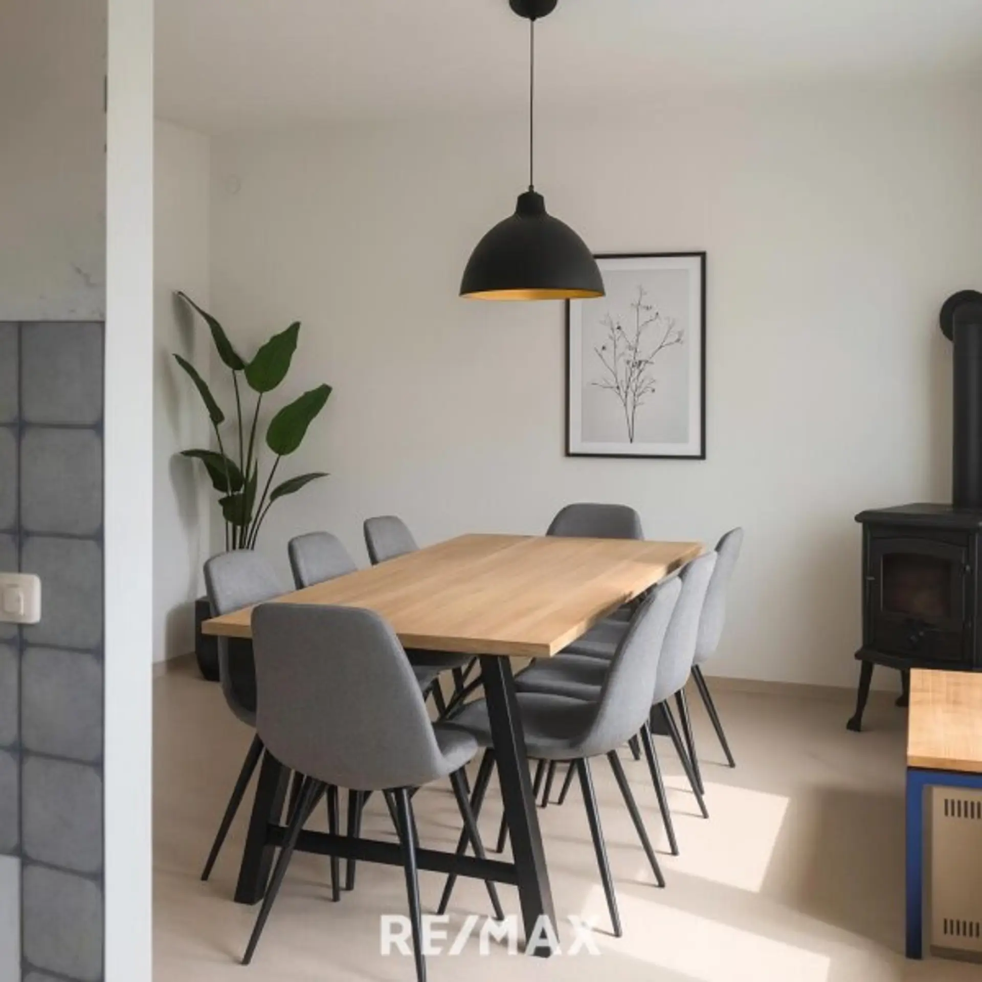 Die Wohnung überzeugt mit einer klar strukturierten Raumaufteilung auf einer Ebene: drei Zimmer, praktische Sanitärräumlichkeiten und ein Wohnbereich, der mit seinem Kamin sofort Wärme und Behaglichkeit ausstrahlt.