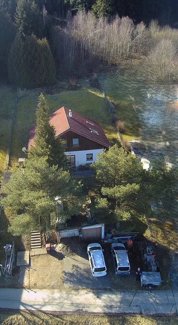 Das Haus wurde Anfang der 90iger Jahre in Holzbauweise ursprünglich als Ferienhaus auf einem 1000m² großem Grundstück errichtet.