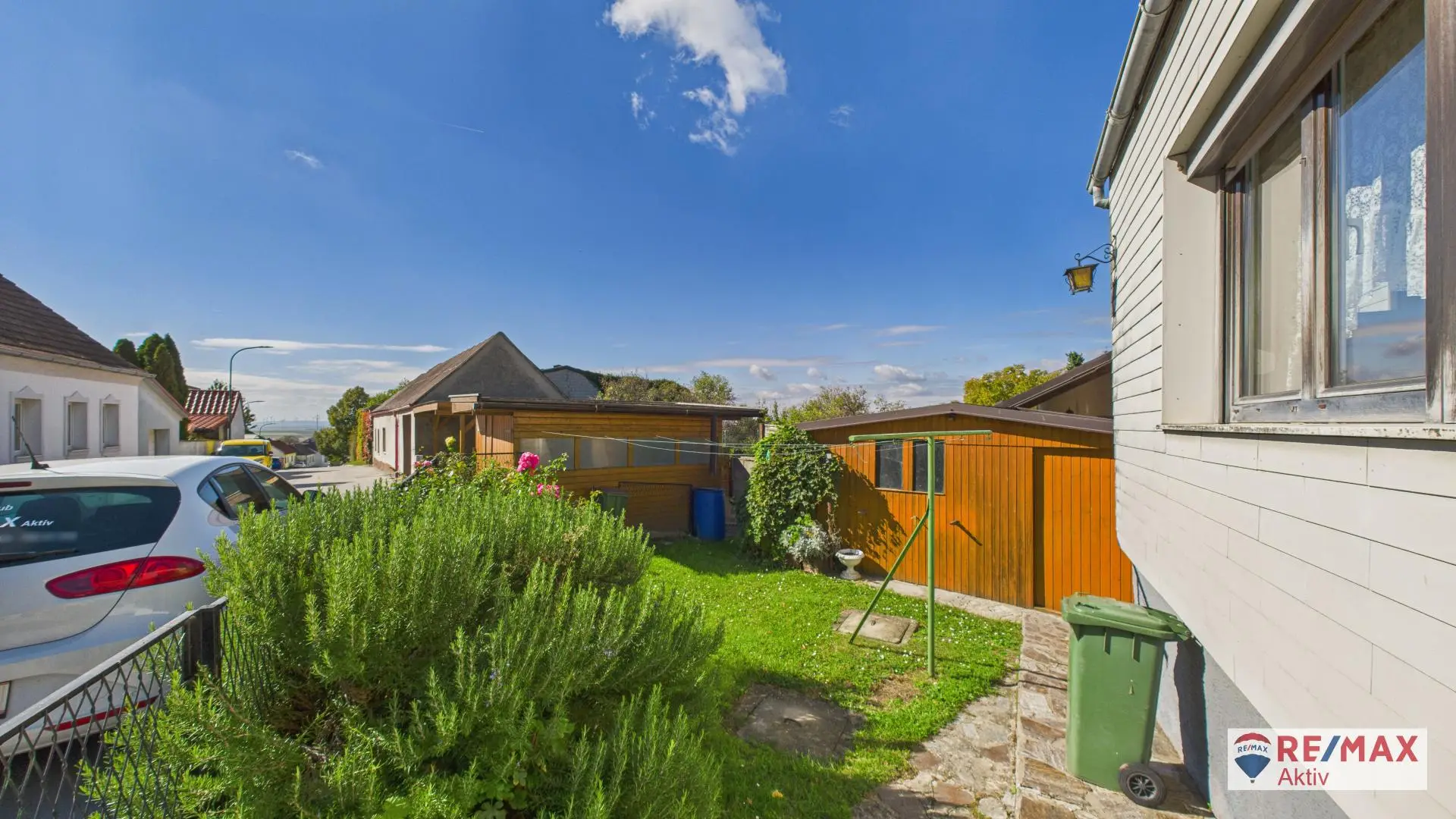 Im Außenbereich befindet sich ein kleiner, feiner Garten, der mit zwei praktischen Gartenhütten zusätzlichen Stauraum oder Platz für Gartengeräte und Freizeitaktivitäten bietet.
