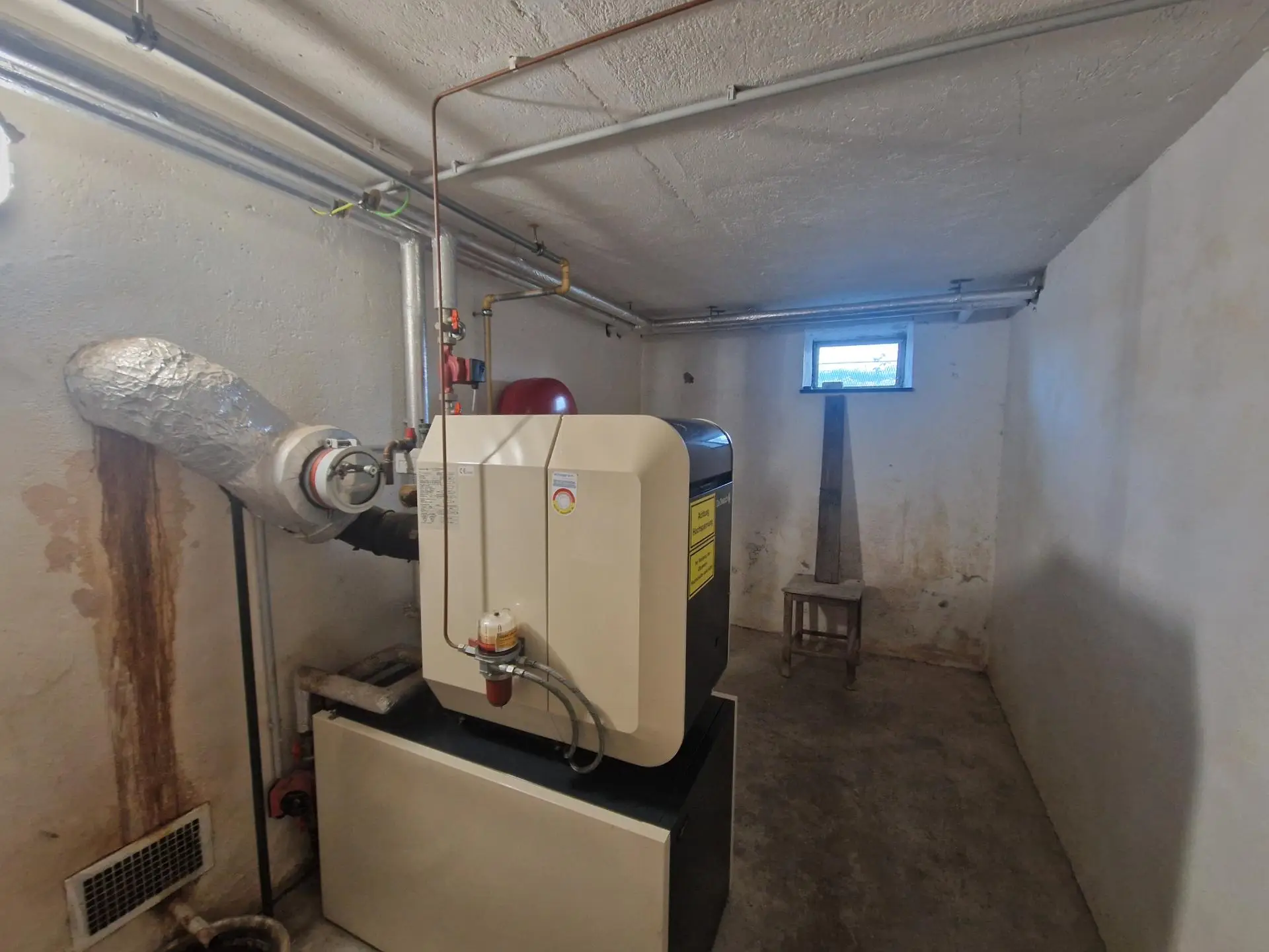 Beheizt wird das gesamte Haus derzeit kostengünstig anhand einer Zentralheizung mit Öl. Ausreichend Stauraum sowie Platz für Personen mit platzaufwendigen Hobbies bietet das Kellergeschoss mit klassischen Kellerräumlichkeiten, dem Heiz- und Technikraum und einer Garage und durch die großen Nebengebäude. Der Garten wurde immer liebevoll gepflegt und befindet sich daher in gutem Zustand mit herrlichem Altbaumbestand.