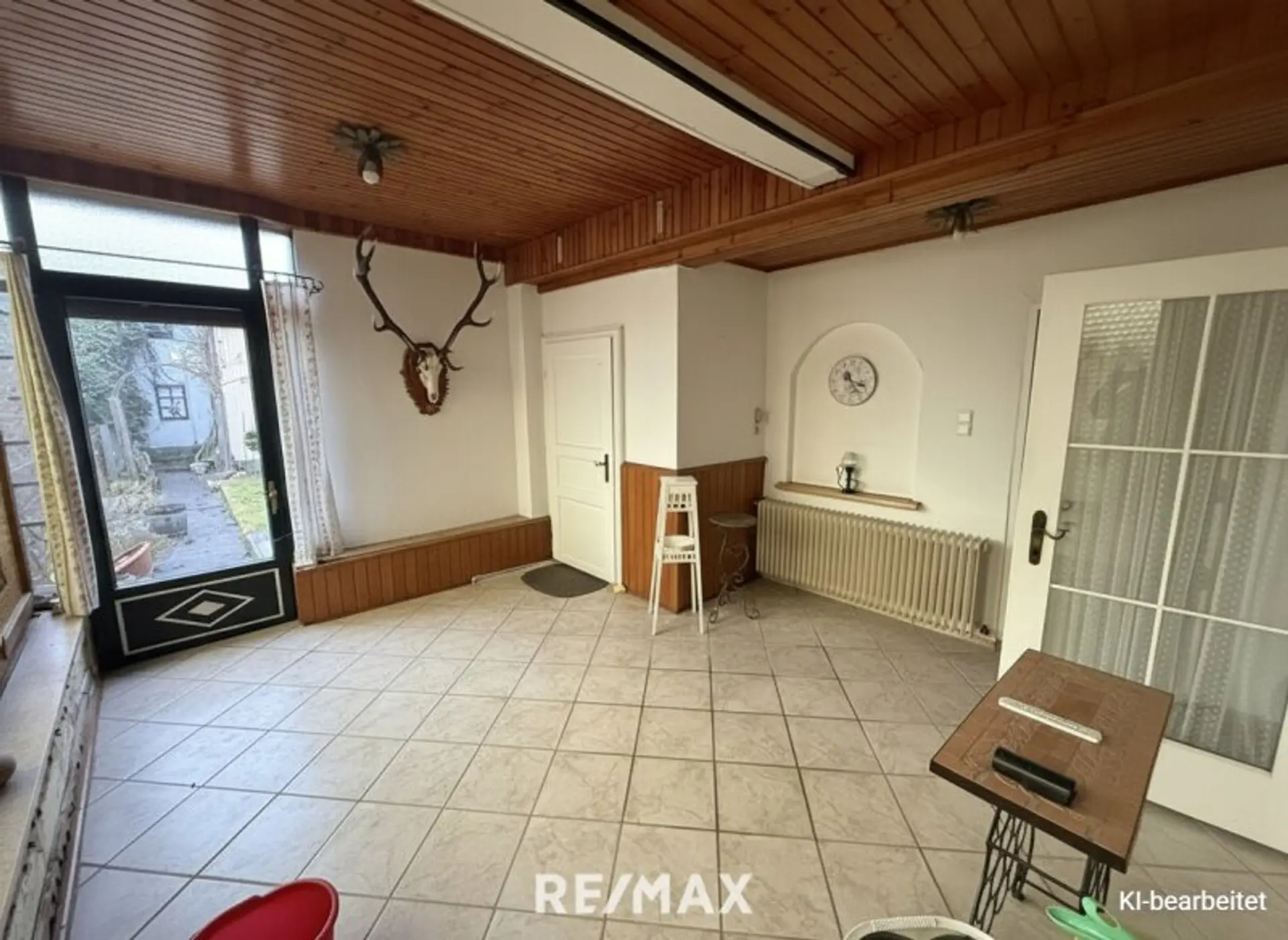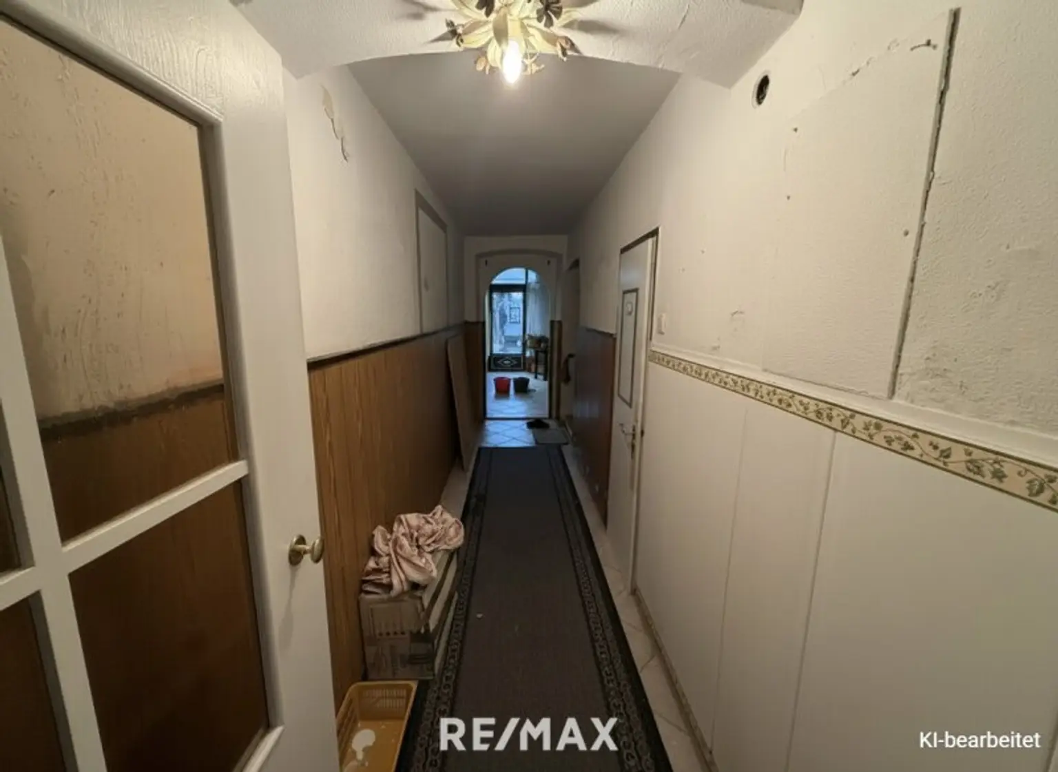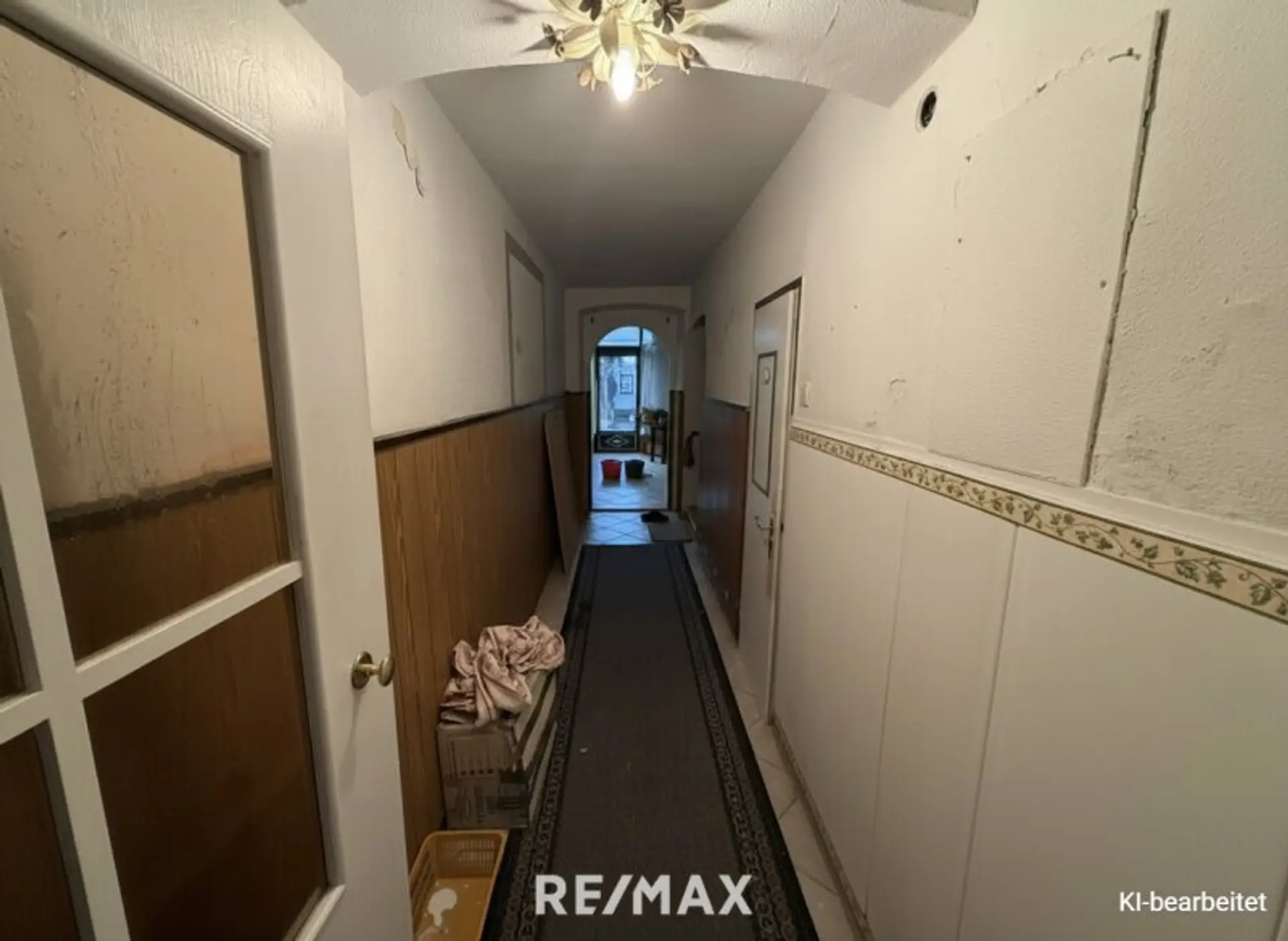 Die Liegenschaft befindet sich insgesamt in einem sanierungsbedürftigen Zustand und eröffnet damit die Chance, das Haus ganz nach den eigenen Vorstellungen zu gestalten und zu modernisieren. Einzelne Bereiche wie die Küche oder das Badezimmer sind derzeit bewohnbar, in anderen Räumen sind aufgrund von Feuchtigkeit entsprechende Sanierungsmaßnahmen einzuplanen.