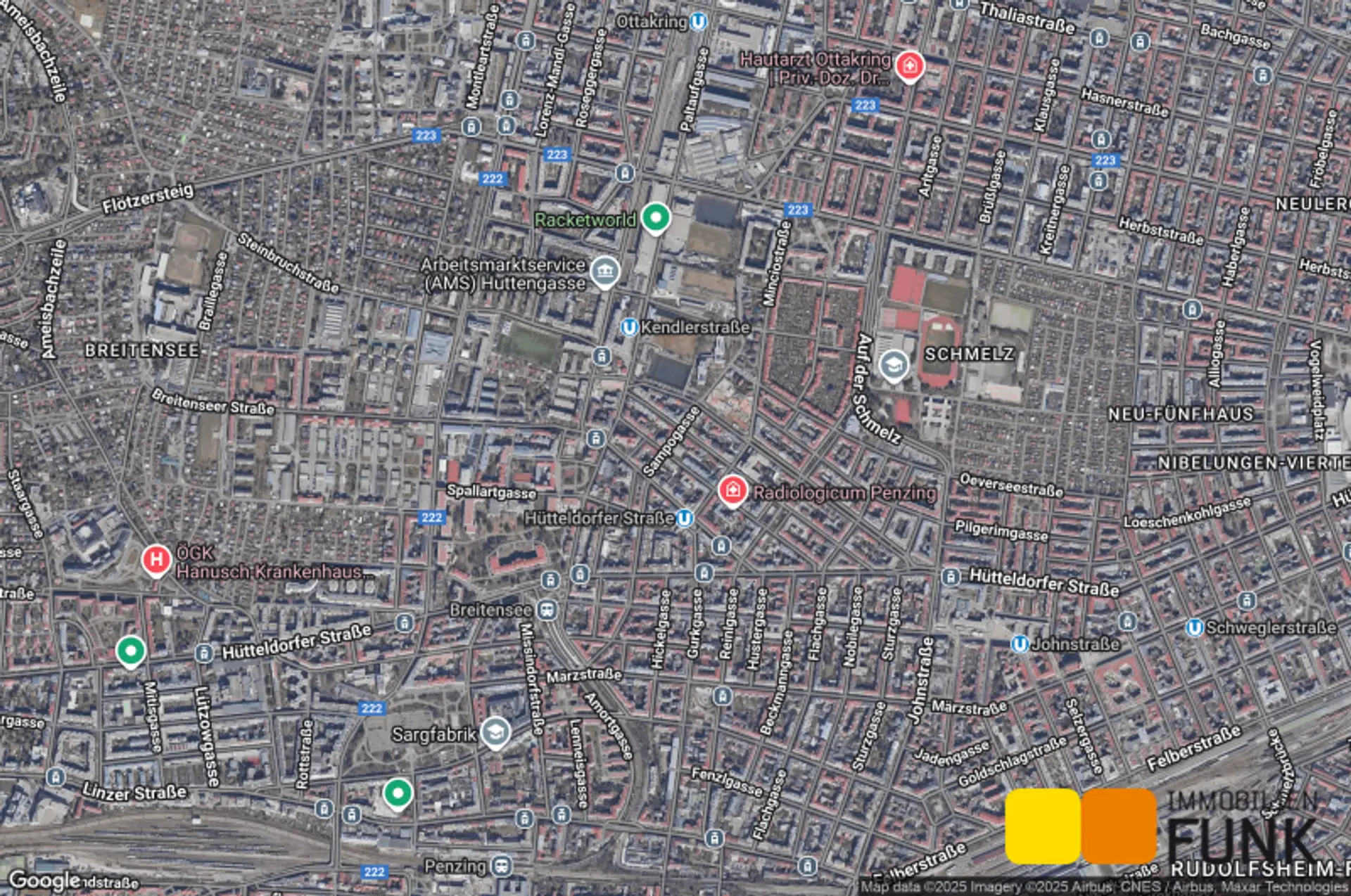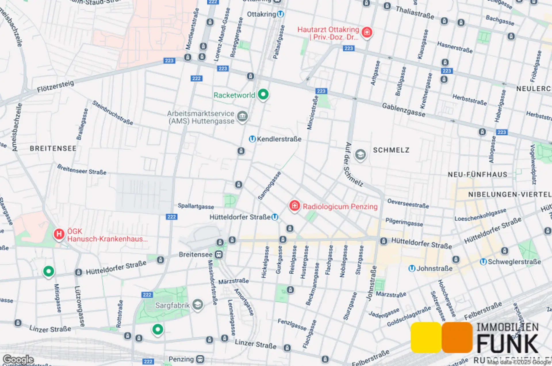 Die Liegenschaft befindet sich im 14. Wiener Gemeindebezirk in der Sampogasse, zwischen Hütteldorfer Straße und Kendlerstraße. In unmittelbarer Umgebung befinden sich zahlreiche Einkaufmöglichkeiten für den täglichen Bedarf. Die Anbindung an den öffentlichen Verkehr ist ausgezeichnet: die Haltestellen der Straßenbahnlinie 49 und 10 sowie die der Autobuslinien 10A, 12A und 63A liegen in Gehweite. Die U-Bahn-Station Kendlerstraße (Linie U3) ist in etwa drei Minuten zu Fuß erreicht. Die Fahrzeit in die Wiener Innenstadt beträgt rund 12 Minuten.