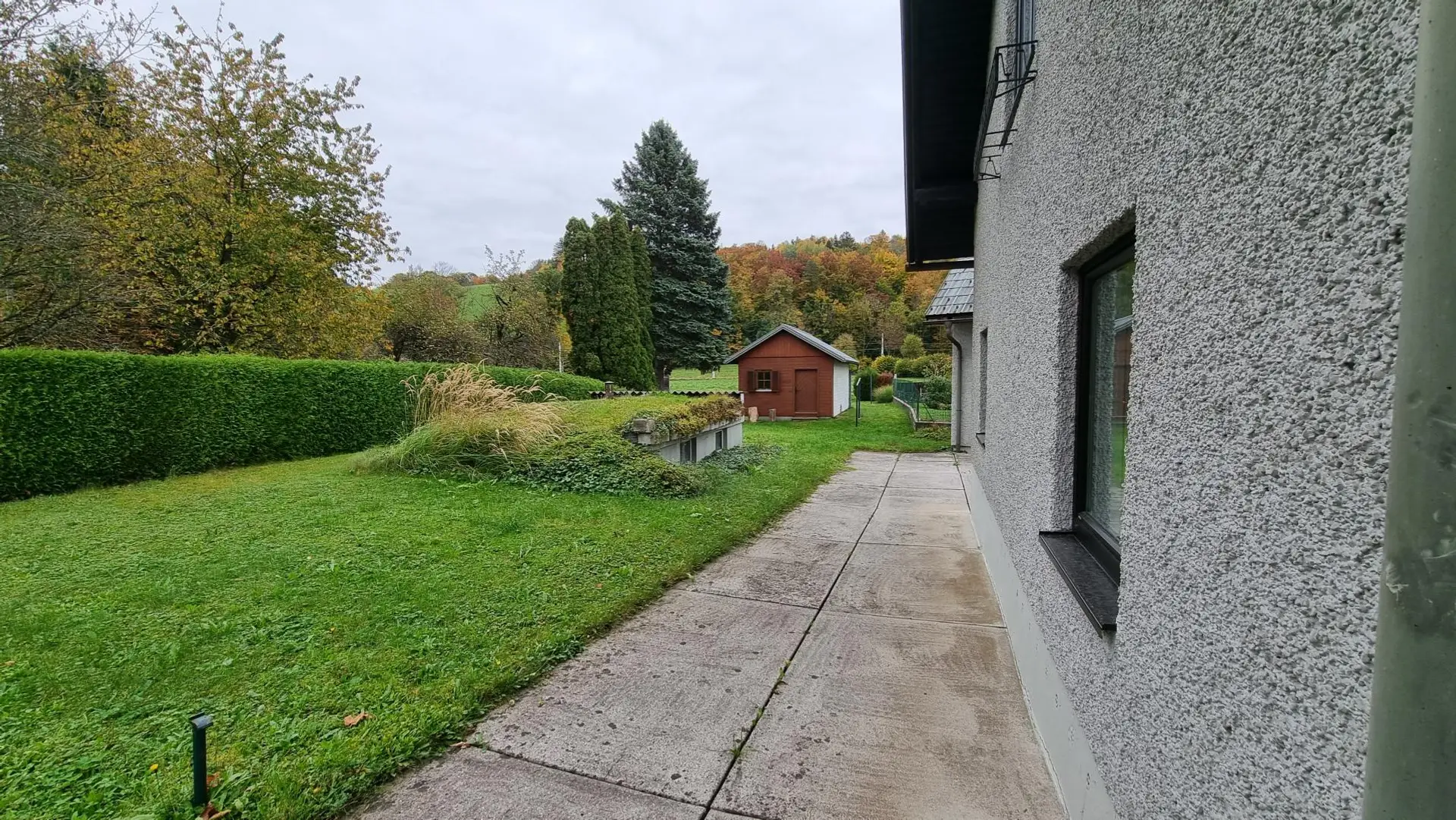 Der Garten beeindruckt durch seine großzügige Fläche und Gestaltungsmöglichkeiten. Eine Gartenhütte ist vorhanden – ideal zur Aufbewahrung von Geräten oder als gemütlicher Rückzugsort. Hier können Sie sich Ihren persönlichen Wohlfühlbereich schaffen, beispielsweise mit einer Terrasse, einem Spa-Bereich oder Platz für gesellige Runden im Freien.