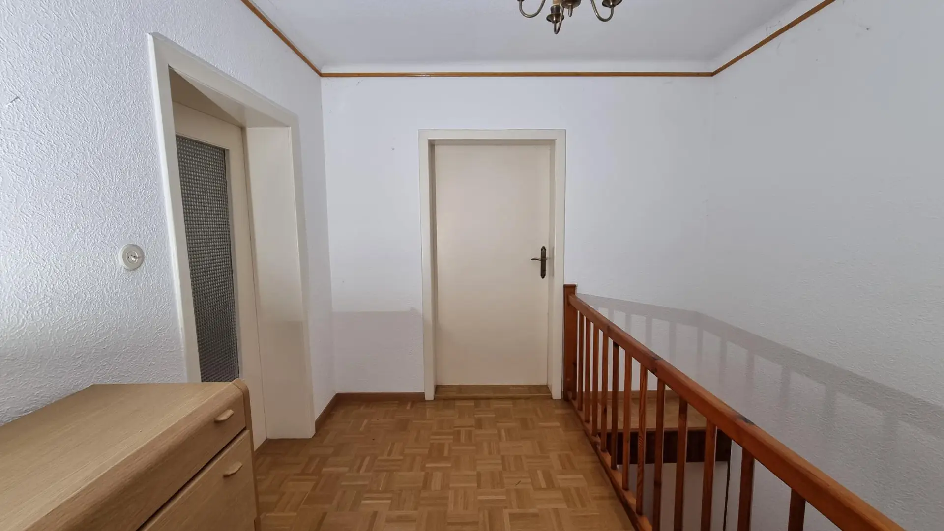 Im Obergeschoss befindet sich ein geräumiges Wohnzimmer. Zudem ist im Obergeschoss ein ausbaufähiger Dachboden vorhanden, der entweder zusätzlichen Wohnraum oder praktischen Stauraum bietet.