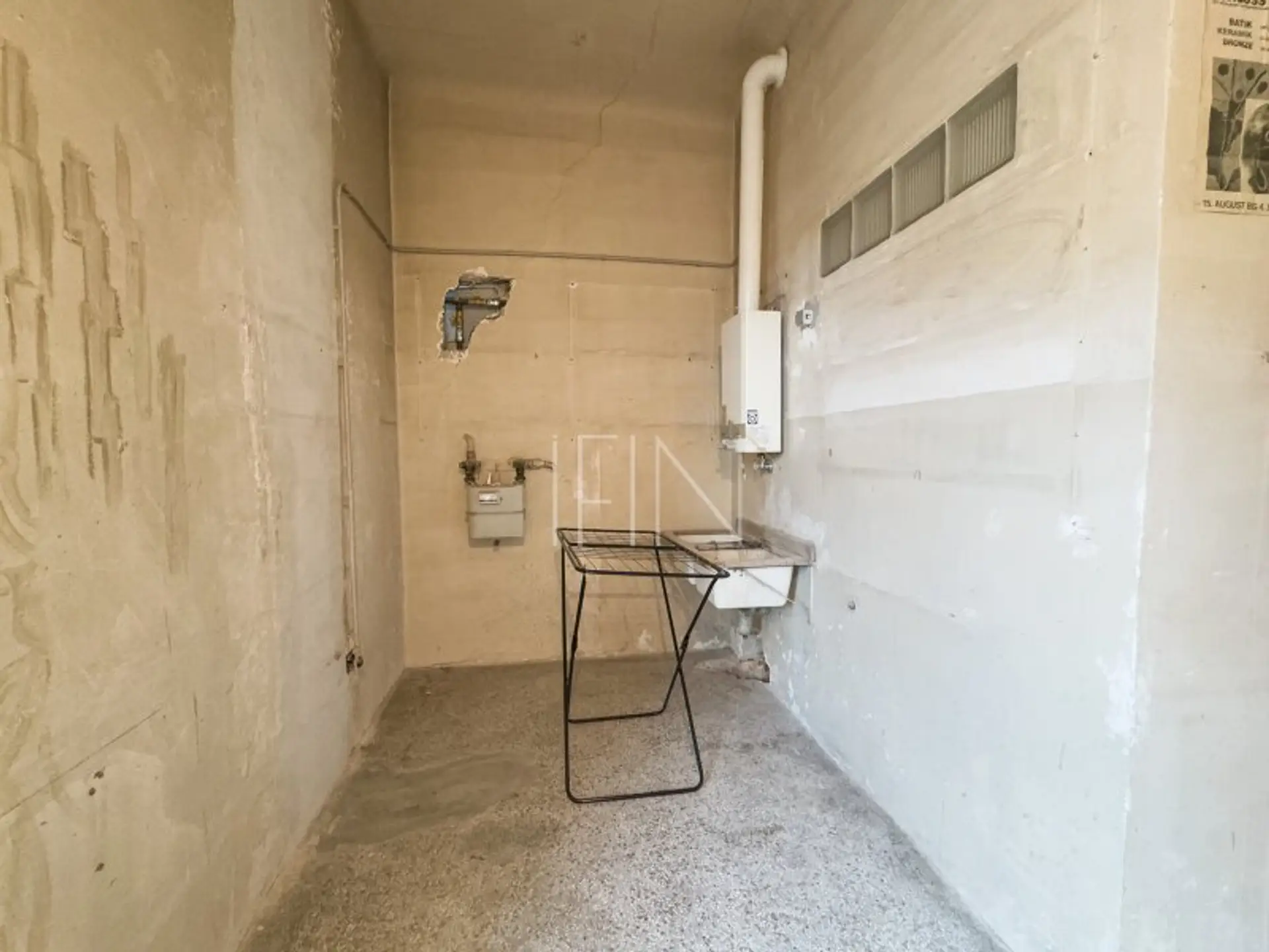 Aktuell besteht die Wohnung aus einem großen Hauptraum, der sich ideal als Wohnküche eignet, sofern die erforderlichen Anschlüsse entsprechend verlegt werden.
