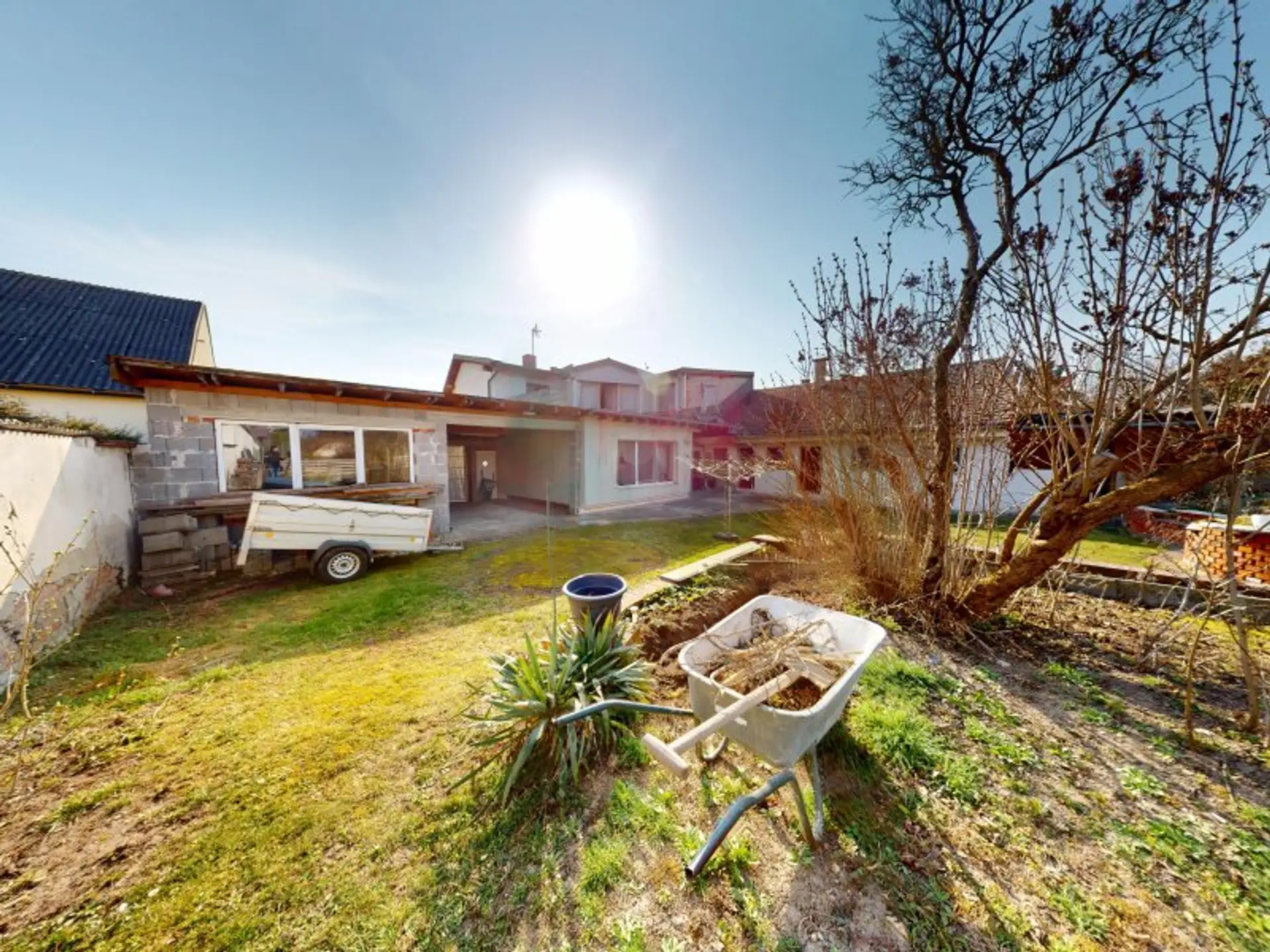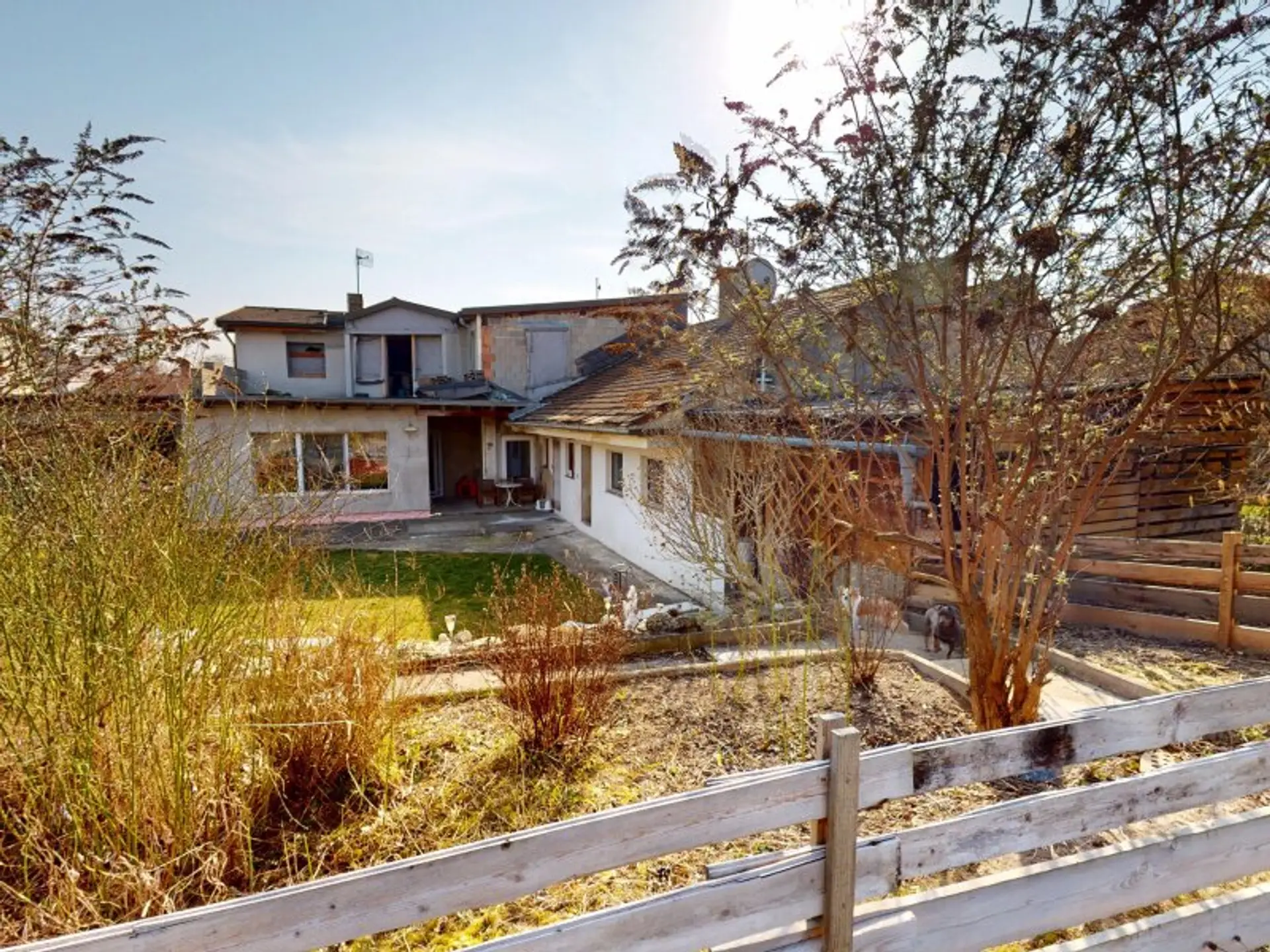 Der bewohnte Teil besteht aus 2 Schlafzimmern, einem großzügigen Wohnzimmer, einem Schrankraum, einem Bad und einer getrennten Küche mit Essplatz. Der noch nicht fertiggestellte Teil hat viel Potenzial. So ist die derzeitige Wohnfläche von ca. 183m² erweiterbar auf ca. 270m² Wohnfläche. Dazu kommen noch die Nebengebäude.
