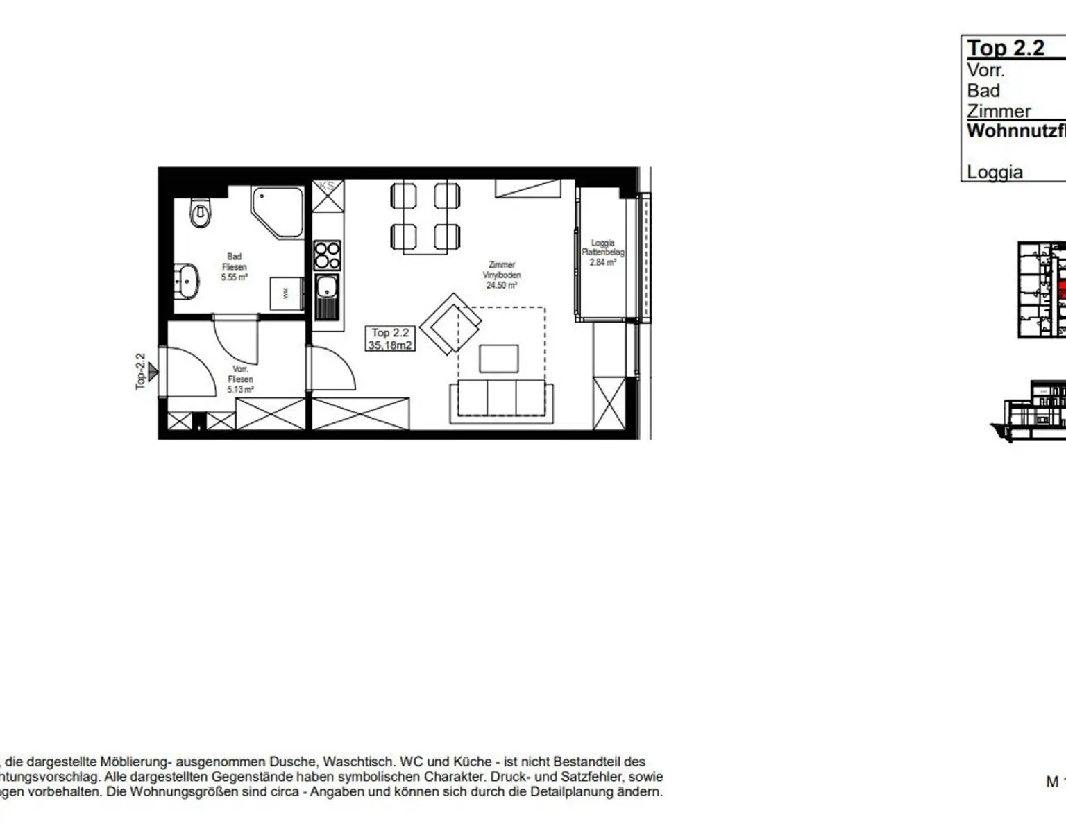 NEU - SATTLEDT NEUBAU - Top 2.2 - ERSTBEZUG - Garconniere ( 1 Zimmerwohnung ) mit Loggia und eigenem Tiefgaragenplatz