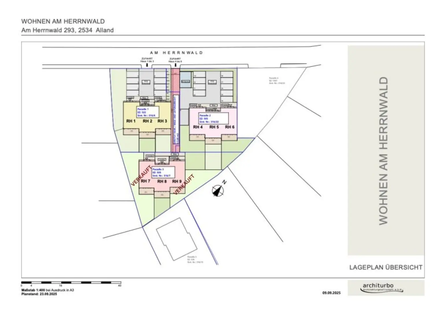 3 Wohnblöcke mit jeweils 3 Reihenhäusern sowie 2 Doppelhaushälften bieten mit großzügigen und durchdachten Grundrissen, vor allem Jungfamilien mit großem Platzbedarf, eine ideale Wohnbasis.