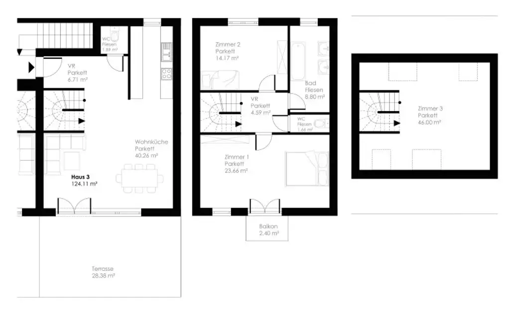 Zusätzlich zum Haus sind 2 Stellplätze zum Kaufpreis von je 14.000€ verpflichtend zu erwerben.