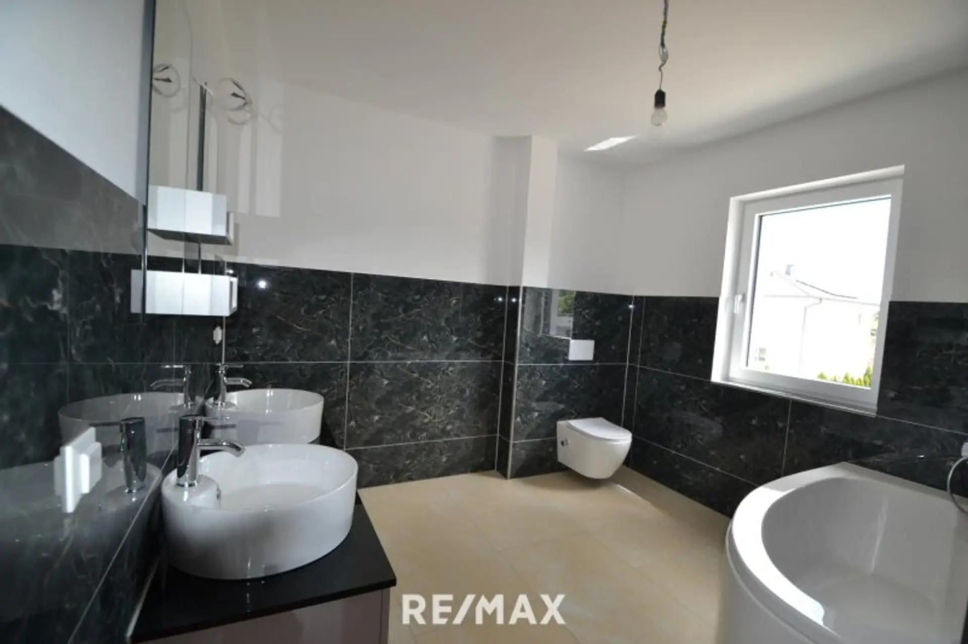 * an Ortswasserleitung bzw. den öffentlichen Kanal angeschlossen