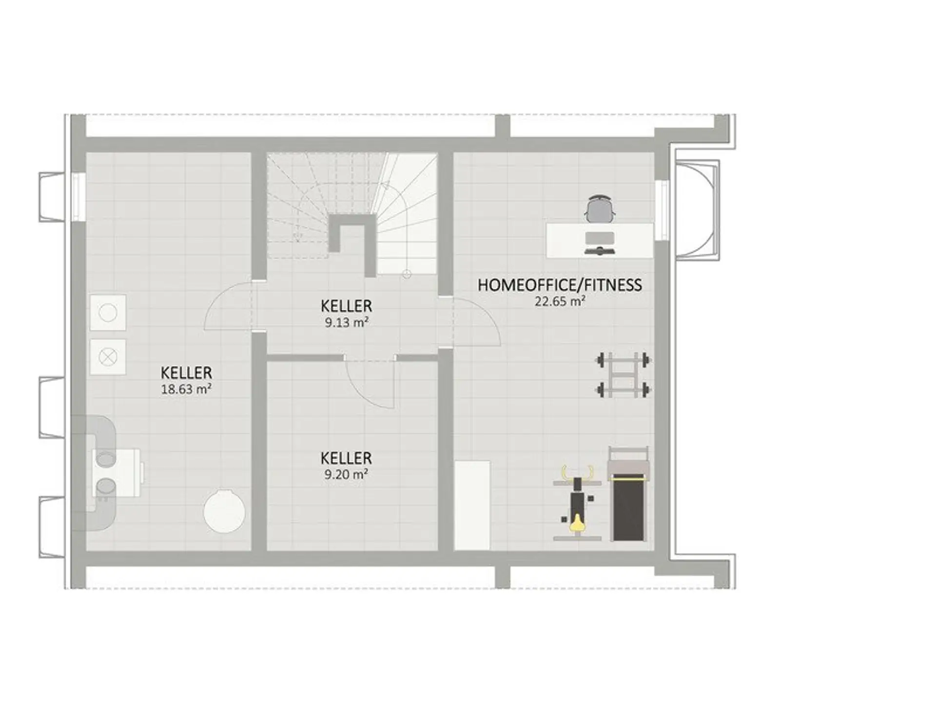 -) großer Hobbyraum (ca. 22,65m2) im Keller