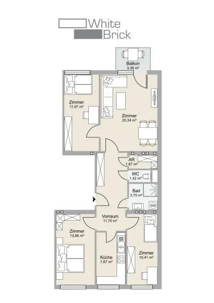 * Vorzimmer (Platz für Garderobe): 11,70m2