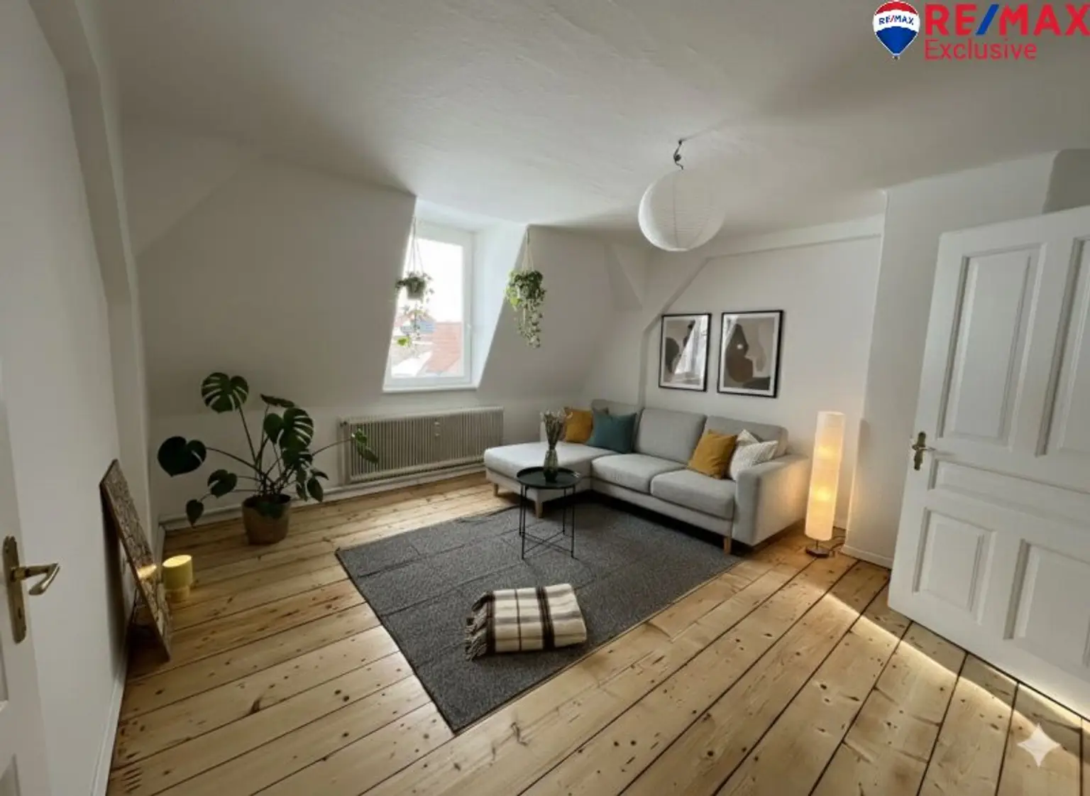 Die Wohnung befindet sich im 2. Stock (Dachgeschoss) eines gepflegten Wohnhauses und bietet eine Wohnfläche von ca. 81,56 m². Große Fensterflächen sorgen für eine freundliche, lichtdurchflutete Atmosphäre.