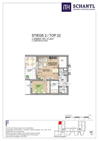 Wohnfläche: ca. 46,38m² + Loggia: ca. 9,64m² + Kellerabteil