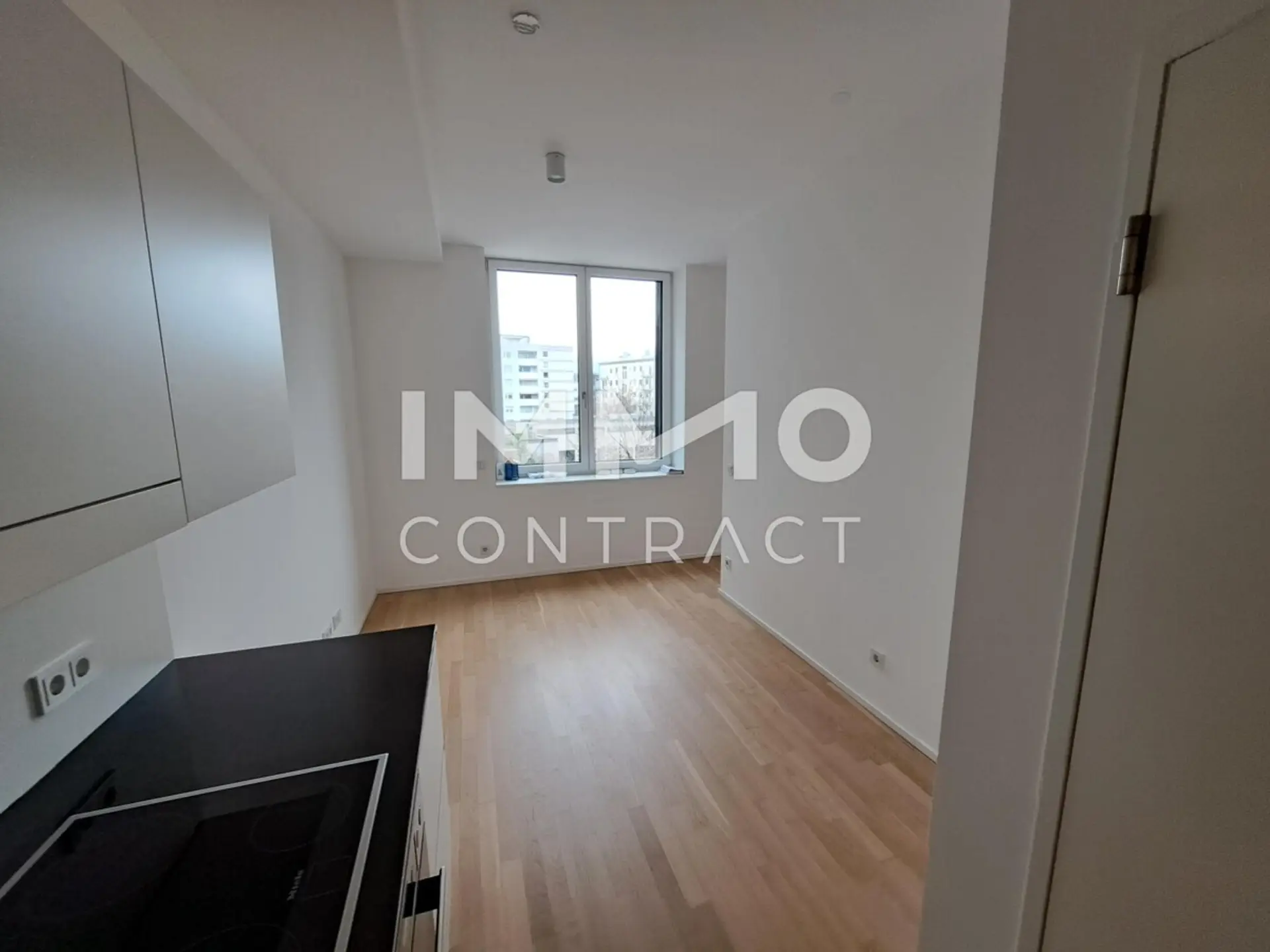Der hochwertige Parkettboden verleiht der Wohnung einen warmen und zeitlosen Charakter. Die elegante Einbauküche punktet mit hochwertigen Miele-Geräten und einer noblen Steinarbeitsplatte. Die elektrischen Raffstores runden das schicke Gesamtpaket ideal ab.