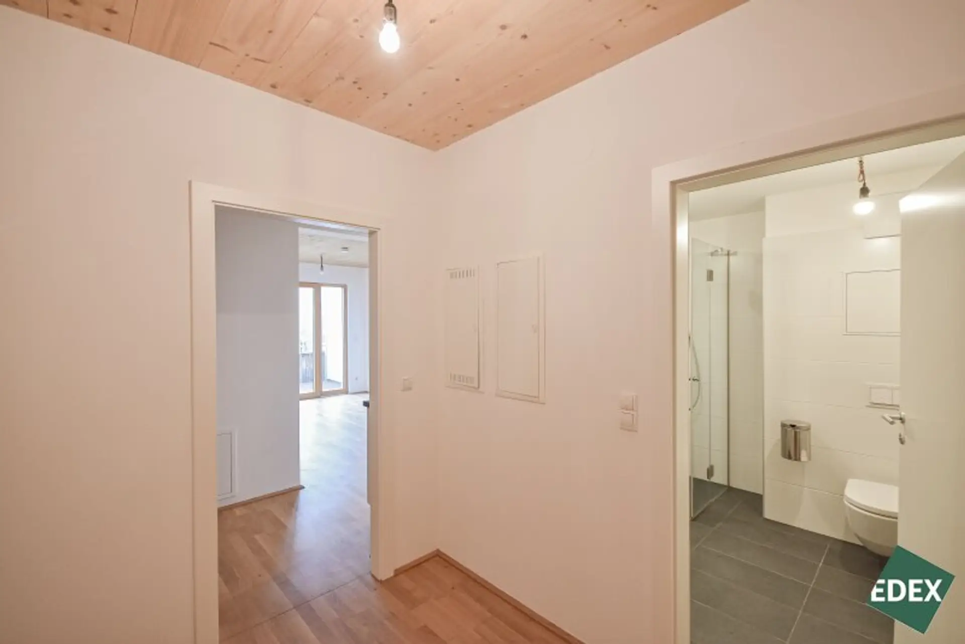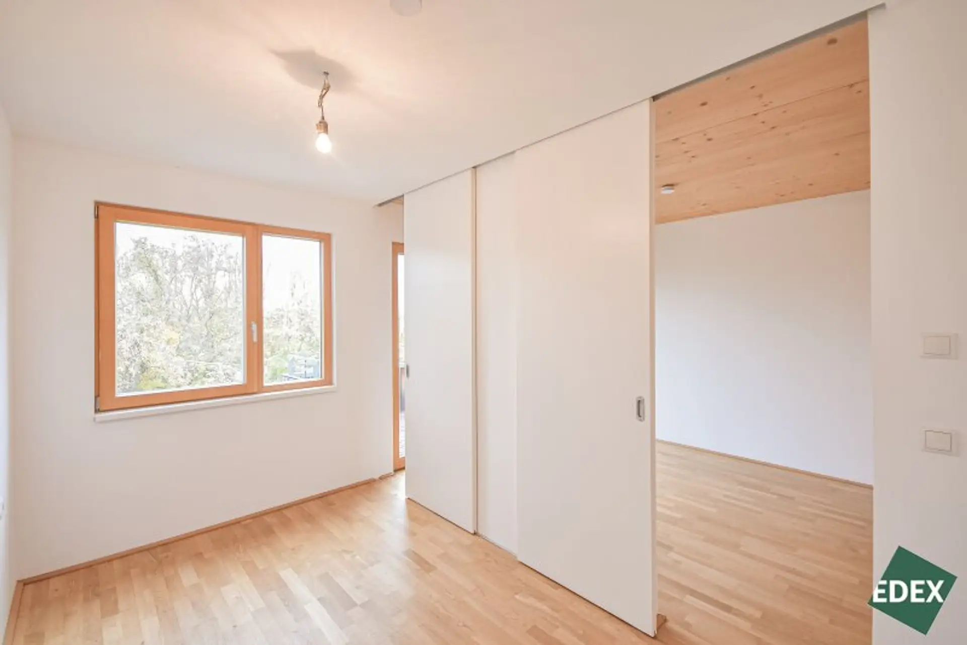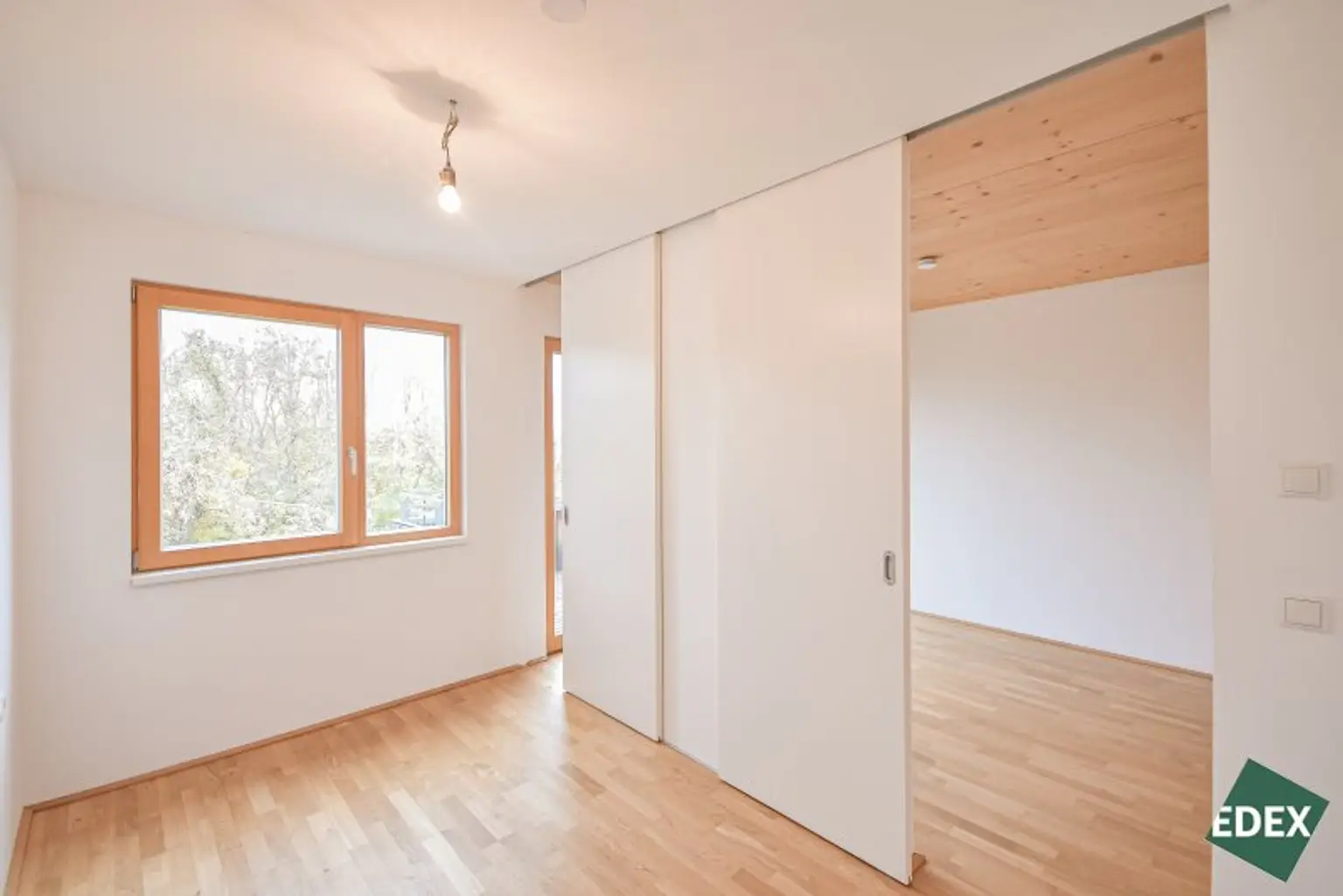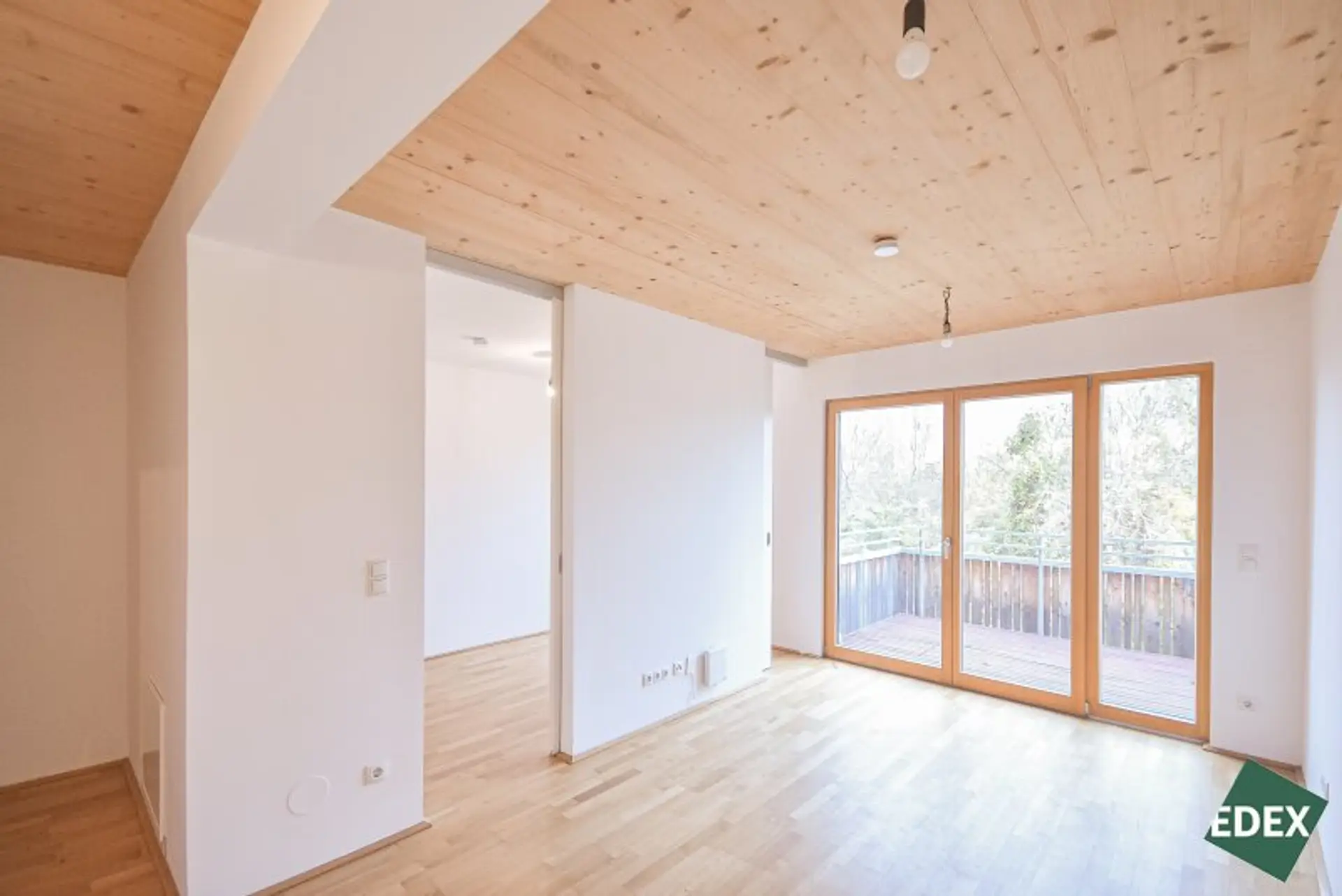 Die hochwertige Ausstattung umfasst sichtbare Holzelemente, Holzfenster mit 3-fach-Verglasung und elektrischer Außenbeschattung, Echtholz-Parkettböden sowie stilvolle Fliesen in den Nassräumen.