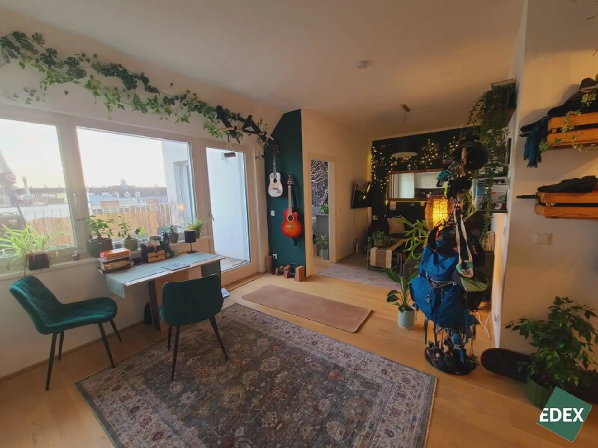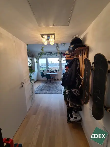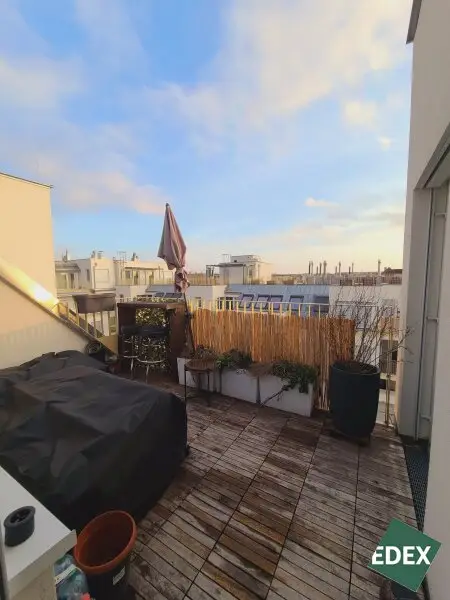 Diese schöne 2-Zimmer-Wohnung liegt im 2. DG eines modernen Neubaus im 10. Wiener Gemeindebezirk. Die Wohnung verfügt über einen Eingangsbereich über den man in das Badzimmer und die Wohnküche mit Einbauküche inkl. aller Geräte (Kühlschrank, Tiefkühler, Backrohr und Kochfeld, Geschirrspüler) gelangt. Von der Wohnküche erreicht man eine westlich ausgerichtete Terrasse sowie das ruhig gelegene Schlafzimmer, das ebenfalls einen Zugang auf die Terrasse hat. Die Terrasse bietet Platz für eine Sitzgelegenheit und ist aufgrund seiner Ausrichtung ideal für eine eigenen Grünoase. Das Badezimmer ist mit einer Dusche, einem Handtuchwärmer und einem Waschbecken, einem Waschmaschinenanschluss und einem WC ausgestattet. Die Wohnräume sind mit einem Vollholzparkett, die Nassräume, der Vorraum sowie die Küche sind mit Fliesen versehen.