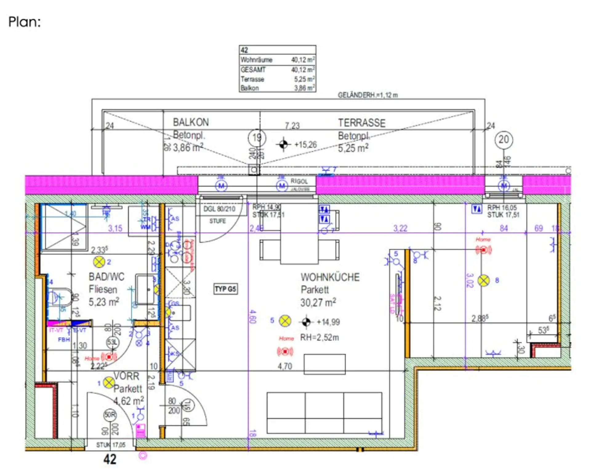 * Badezimmer + WC: 5,23 m²