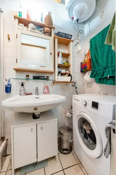 - Badezimmer mit Dusche und Waschmaschinenanschluss