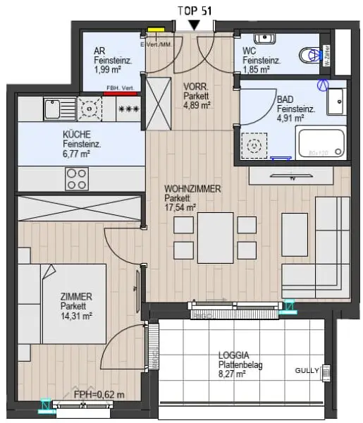 Ausstattung: Boden Bad Abstellraum Fußbodenheizung Loggia
