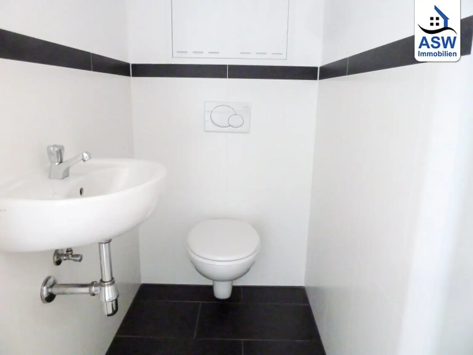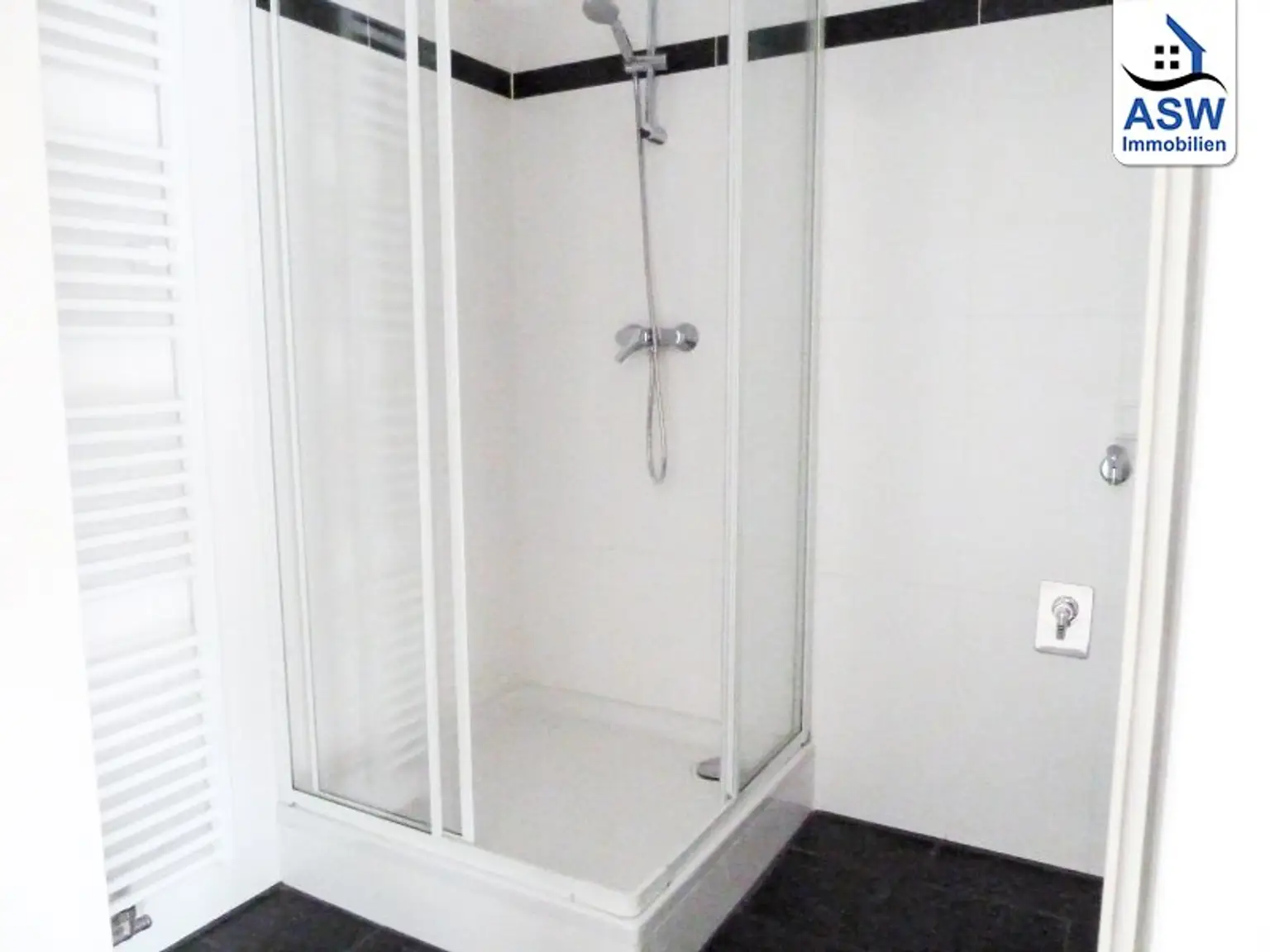 - Badezimmer mit Dusche und Waschmaschinenanschluss
