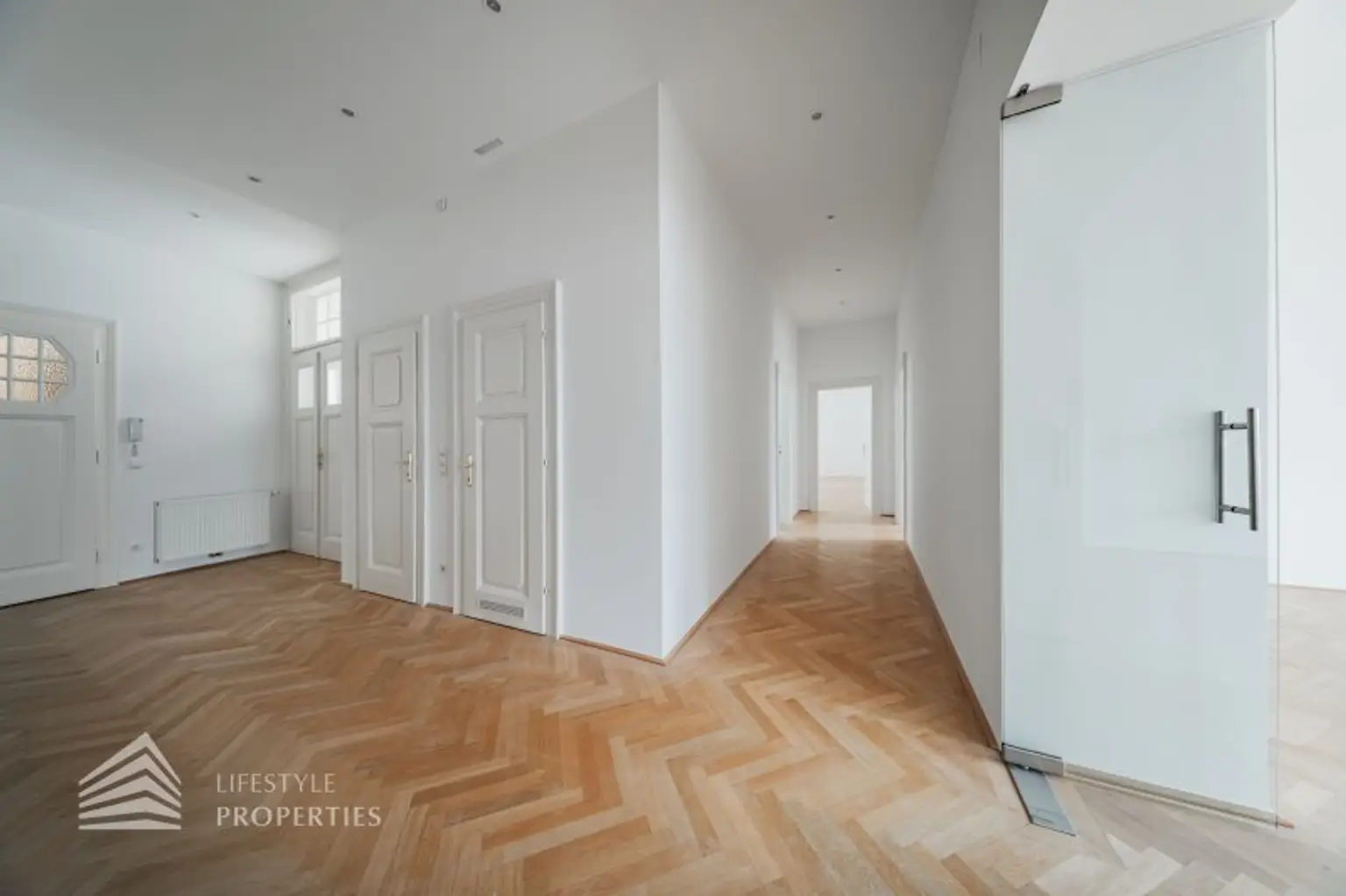 Die Wohnung befindet sich im 2. Obergeschosses eines wunderschönen Altbaus aus dem Jahr 1910 und ist bequem über einen Lift erreichbar. Die großzügige Wohnfläche von ca. 165 m² gliedert sich in ein großes Entrée, 3 Zimmer, 2 Bäder, eine Küche, einen Abstellraum und ein Gäste-WC. Zusätzlich verfügt die Wohnung über eine charmante Loggia. Beheizt wird die Wohnung mittels Gasetagenheizung. Für warme Sommertage ist die Wohnung mit einer Kühlung ausgestattet. Wunderschöner Fischgrätparkett in den Wohnräumen und moderne Fliesen in den Nebenräumen verkleiden elegant den Boden. Die schönen hohen Fenster, sowie Flügeltüren verleihen der Wohnung den berühmten Charme eines Wiener Altbaus.