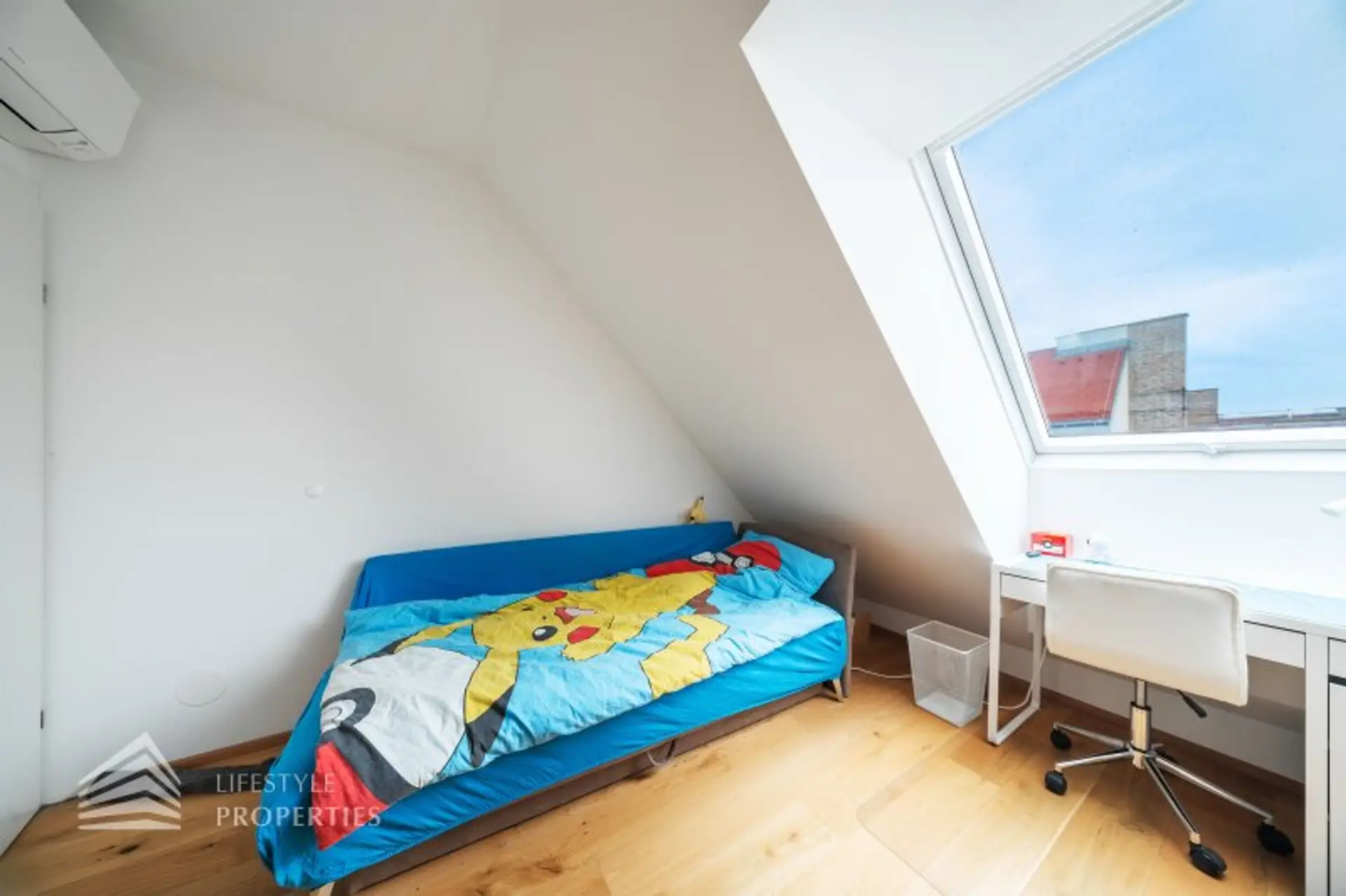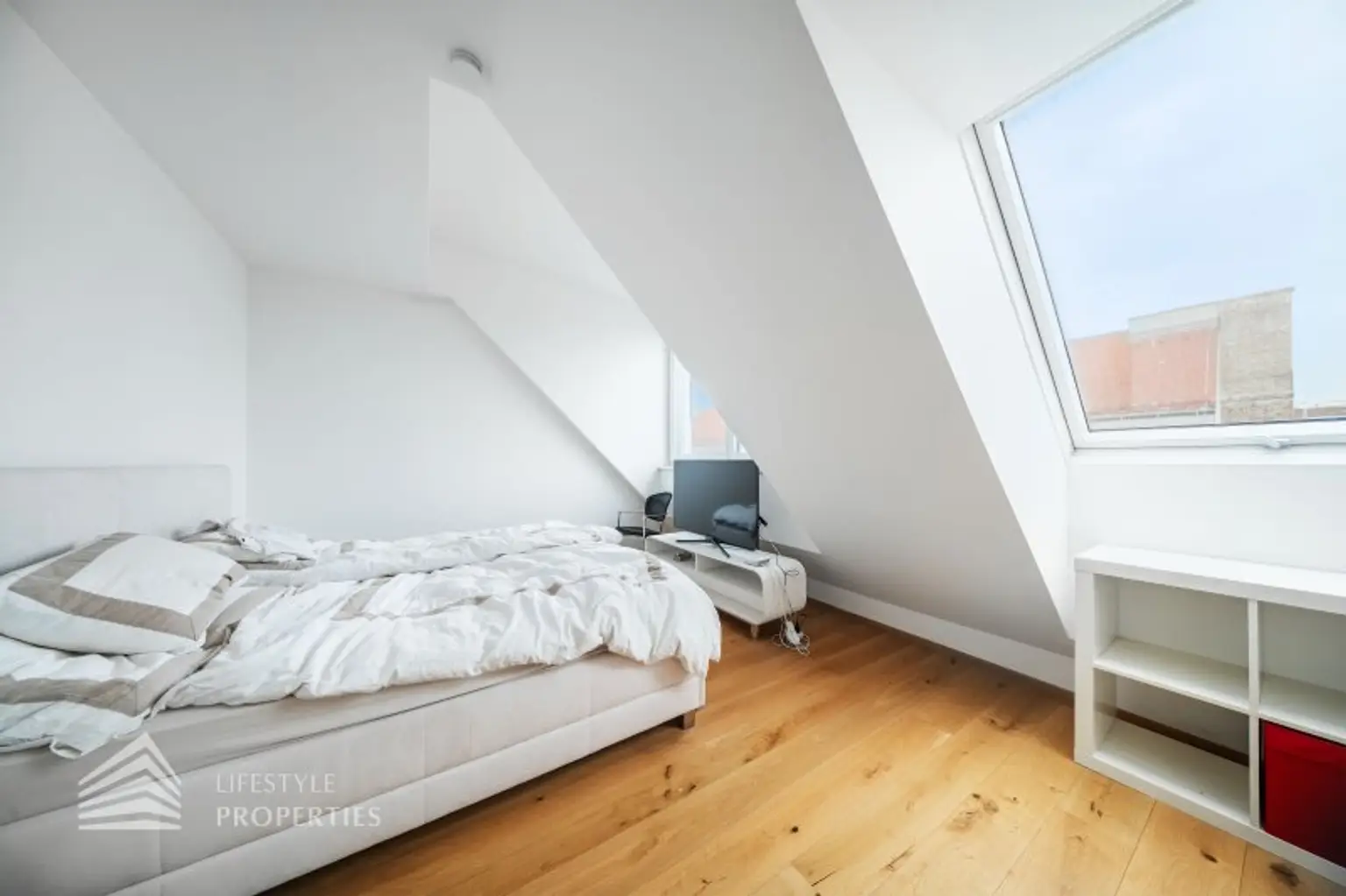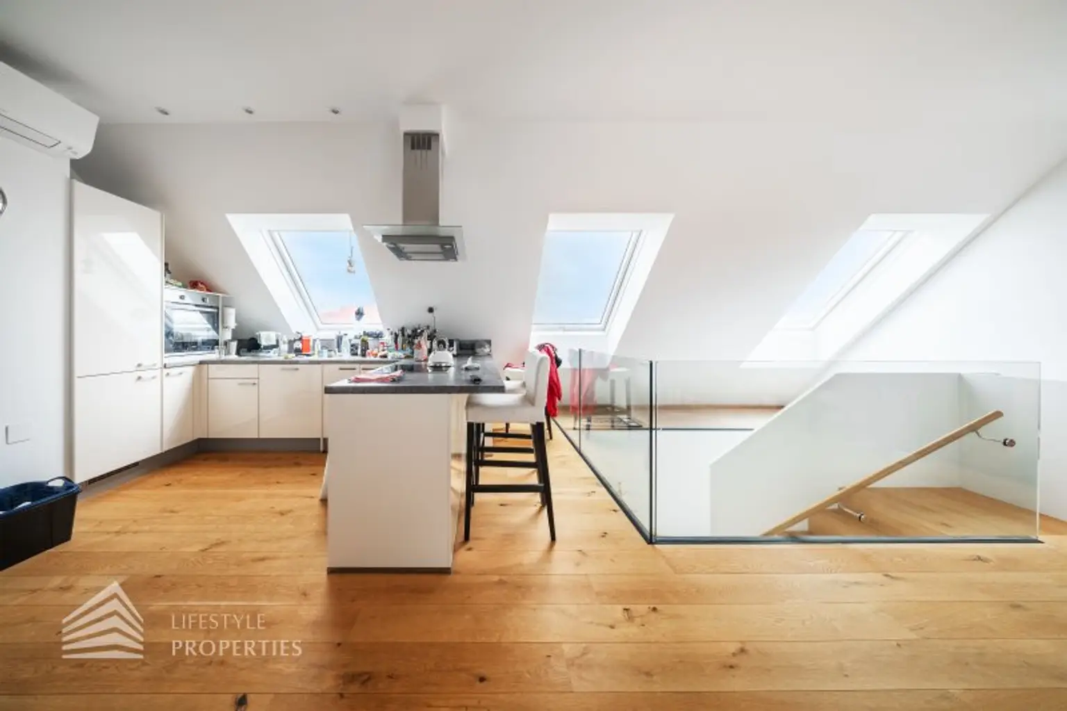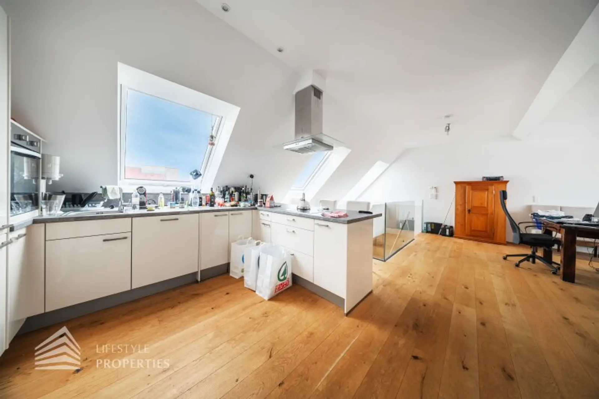 Die Wohnung befindet sich im DG eines im Jahre 1971 erbauten Neubaus und erstreckt sich über eine Wohnfläche von ca. 94 m² und ca. 7 m² privater Terrasse mit einem traumhaften Blick über Wien. Die moderne Immobilie erstreckt sich auf zwei Ebenen. Die Wände der Wohnräume, alle Türen und Fenster sind in zeitlosen Weiß gehalten.
