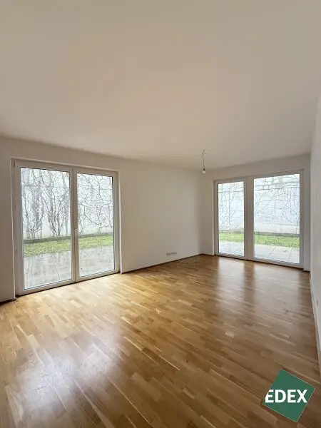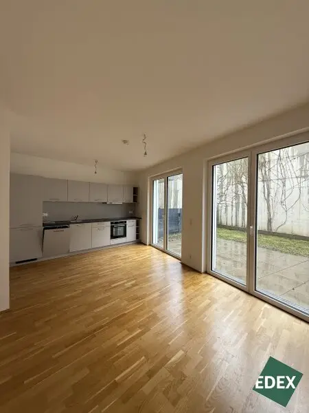 Zur Vermietung gelangt eine schöne 3-Zimmer-Gartenwohnung in ruhiger Wohnlage. Die lichtdurchflutete Wohnung befindet sich im 1.Stock und verfügt über einen Vorraum, einen Abstellräum mit Waschmaschinenanschluss, ein separates WC, ein modernes Badezimmer mit Badewanne und Waschbecken, eine großzügige Wohnküche inkl. Geräten sowie zwei Schlafzimmer. Über das Wohnzimmer hat man Zugang zu einem ca. 135 m2 großen Garten. Die Fenster sind mit Raffstores/außenliegenden Sonnenschutz ausgestattet. Die Wohnräume sind mit Parkettböden und die Nassräume sind mit eleganten Fliesen ausgestattet. Im Haus befinden sich Kinderwagen- und Fahrradabstellräume sowie eine Tiefgarage in der Stellplätze angemietet werden können. Die Wohnungen stehen ab Dezember zur Verfügung und werden auf 3 Jahre befristet vermietet.