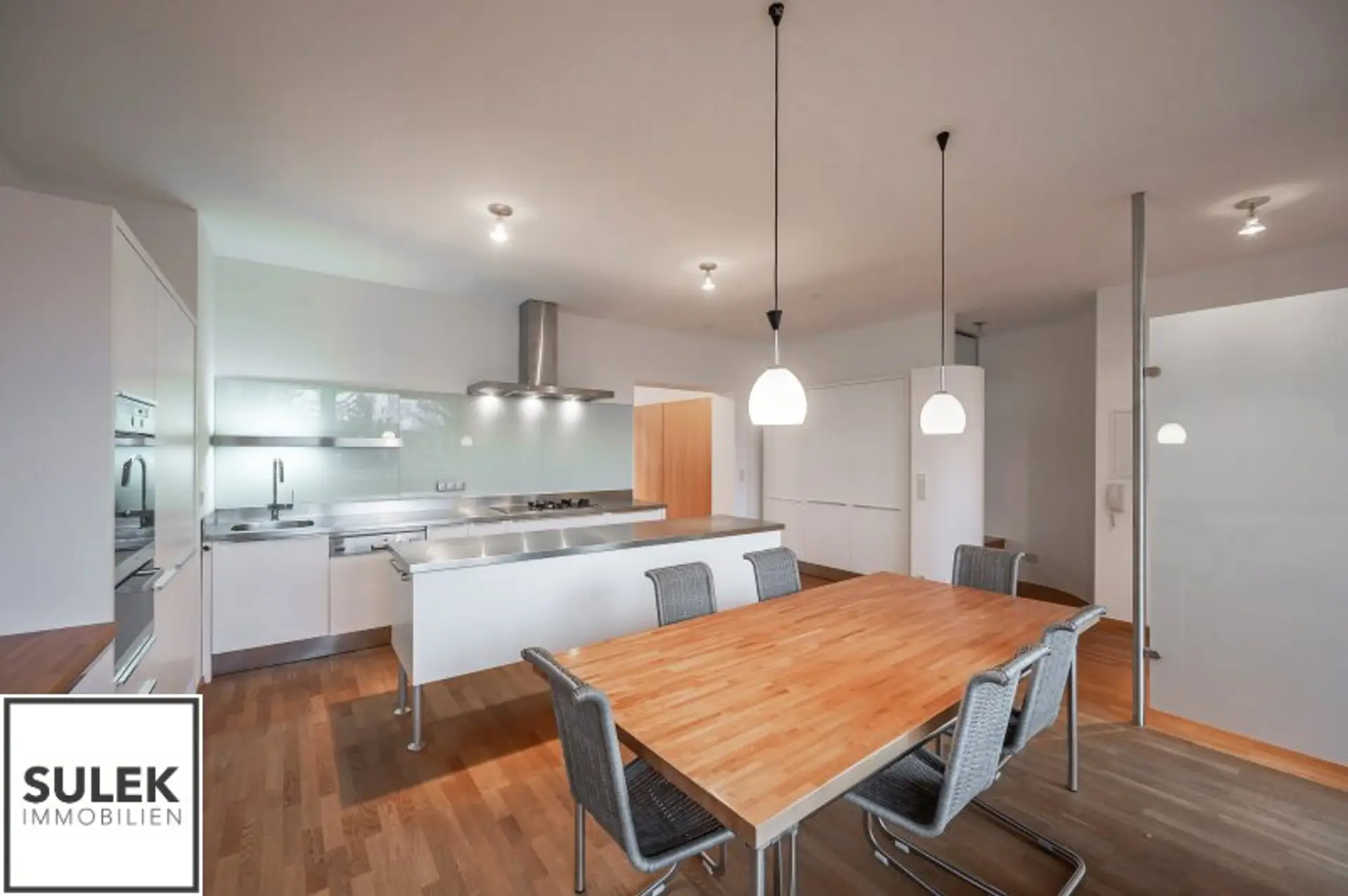 * Der Eingang mit einem Garderobenbereich in einer Nische führt direkt in die große, voll ausgestattete Küche samt Esszimmer (kein separates Vorzimmer vorhanden), sowie zum