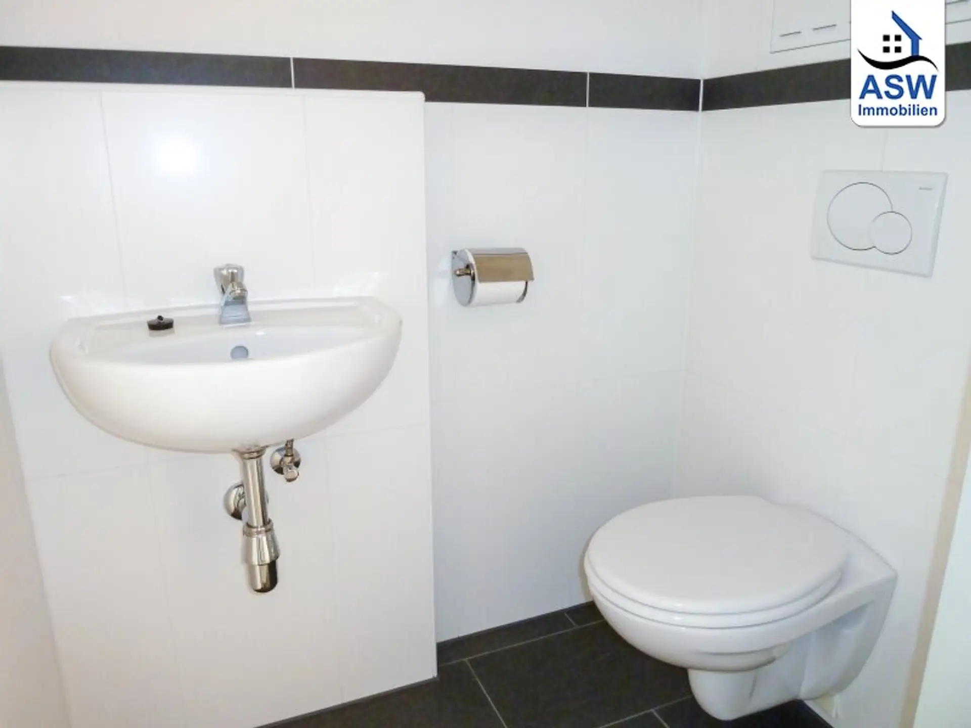 - Badezimmer mit Badewanne und Waschmaschinenanschluss