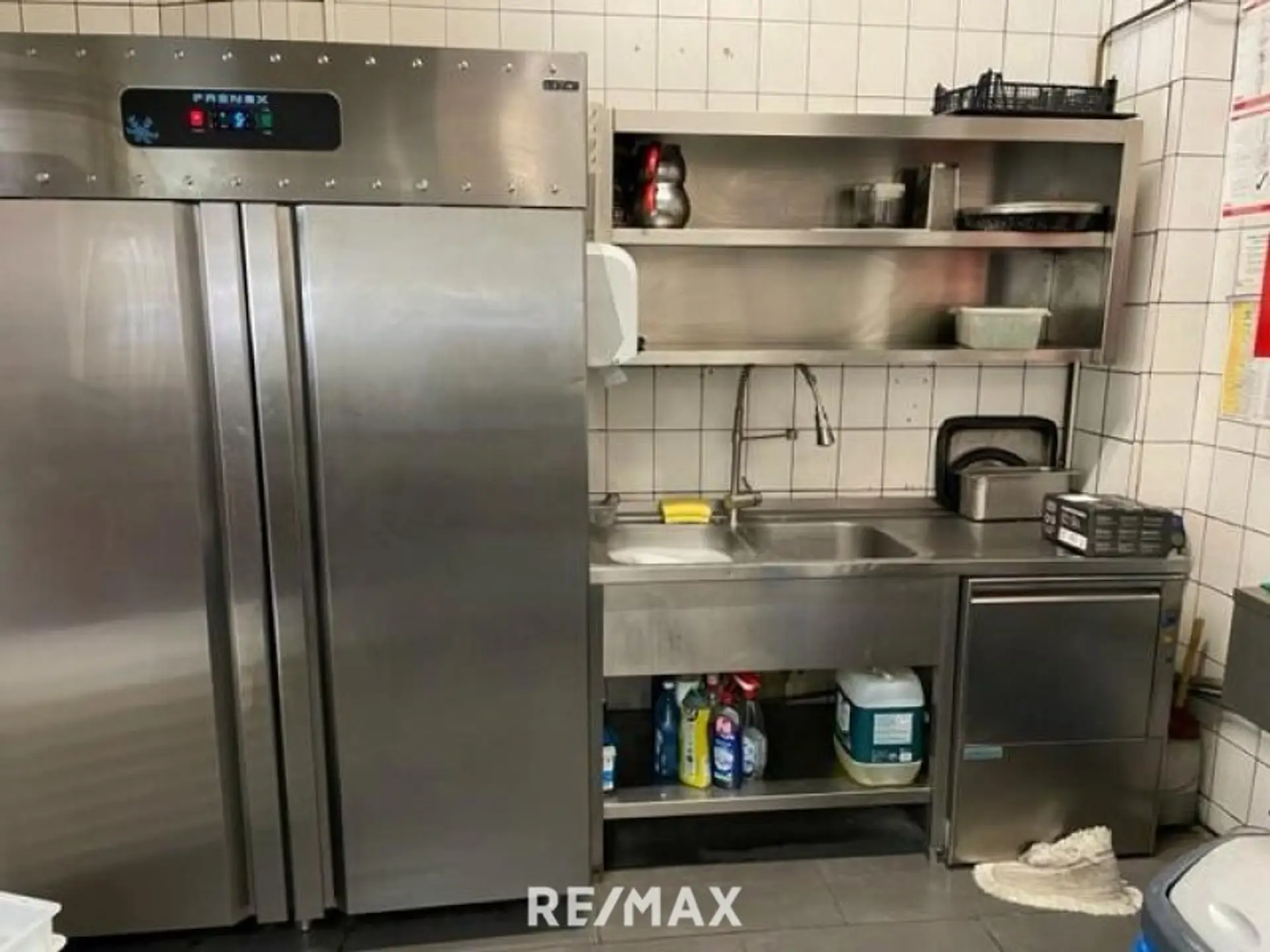 * Die große Nirostarküche ist mit allen notwendigen Geräten ausgestattet (4 flammiger Gasherd, 2 Fritteusen, Kaffeemaschine, Teigrührmaschine, Tiefkühlschrank, Gläserspüler,...)