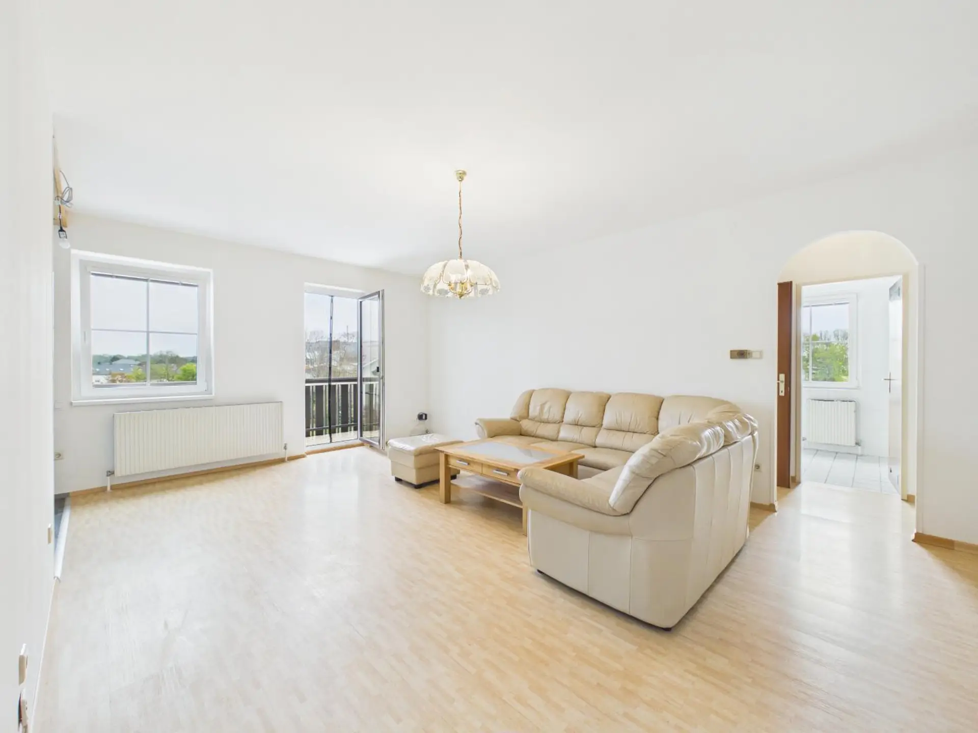 Die Wohn- und Schlafräume sind mit Laminatböden ausgestattet.