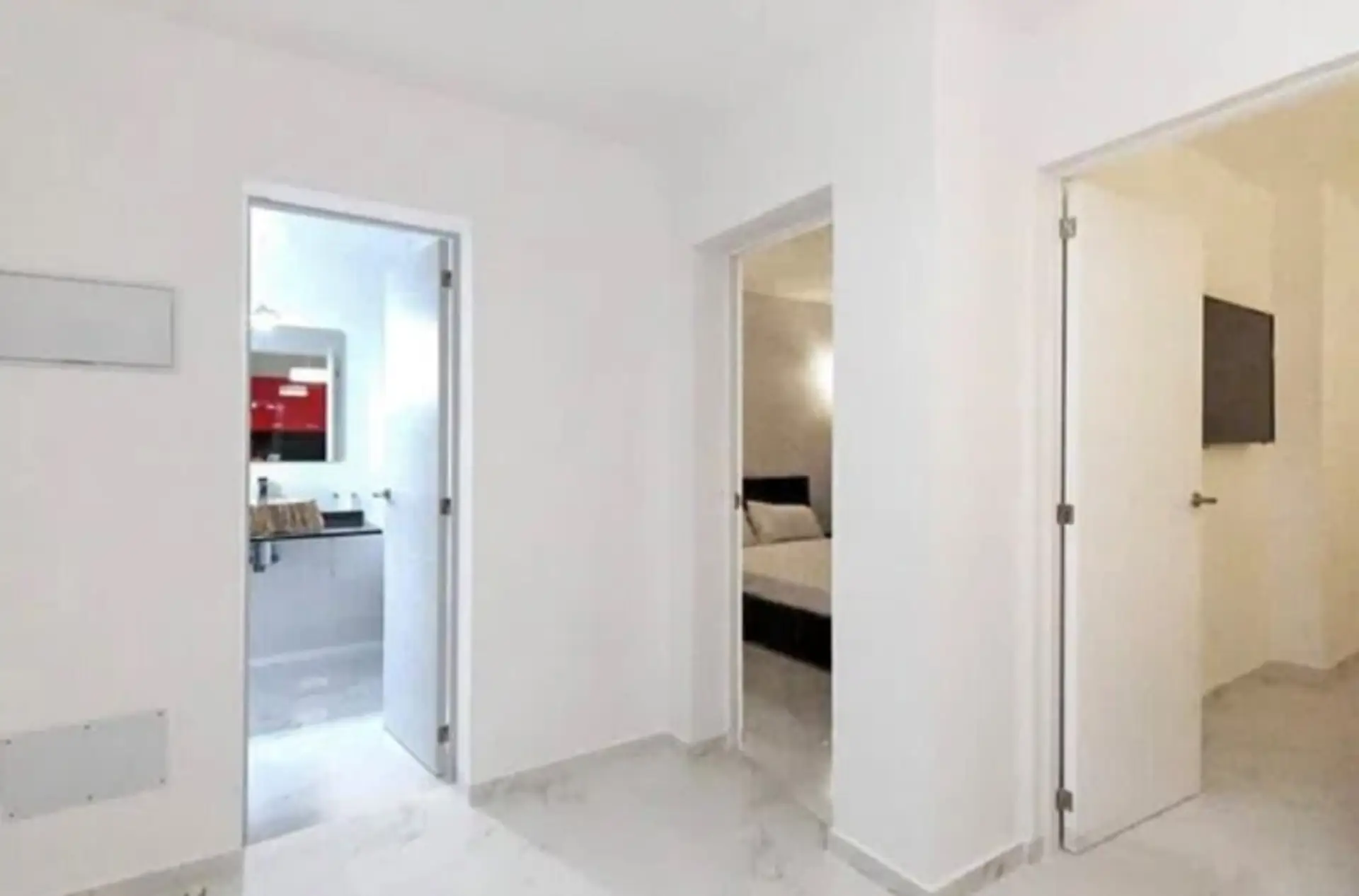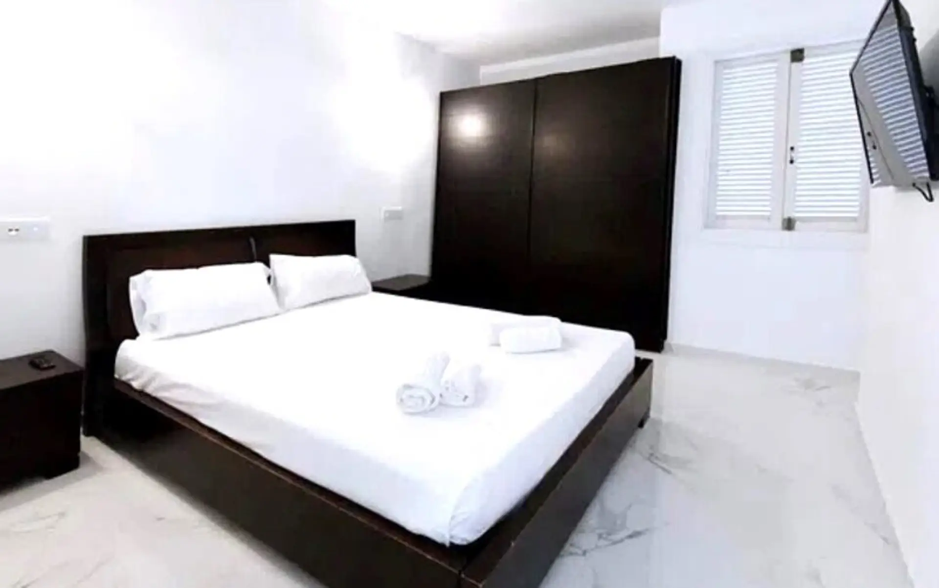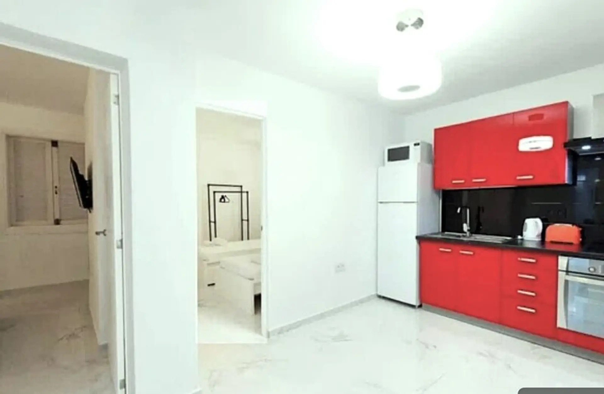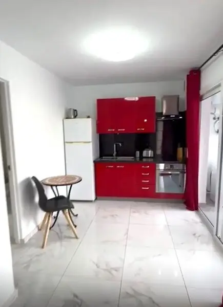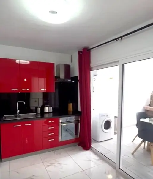 Die Immobilie verfügt über eine offene Küche, ein Wohnzimmer, zwei Schlafzimmer mit Einbauschränken und ein modernes Badezimmer mit WC und Dusche.